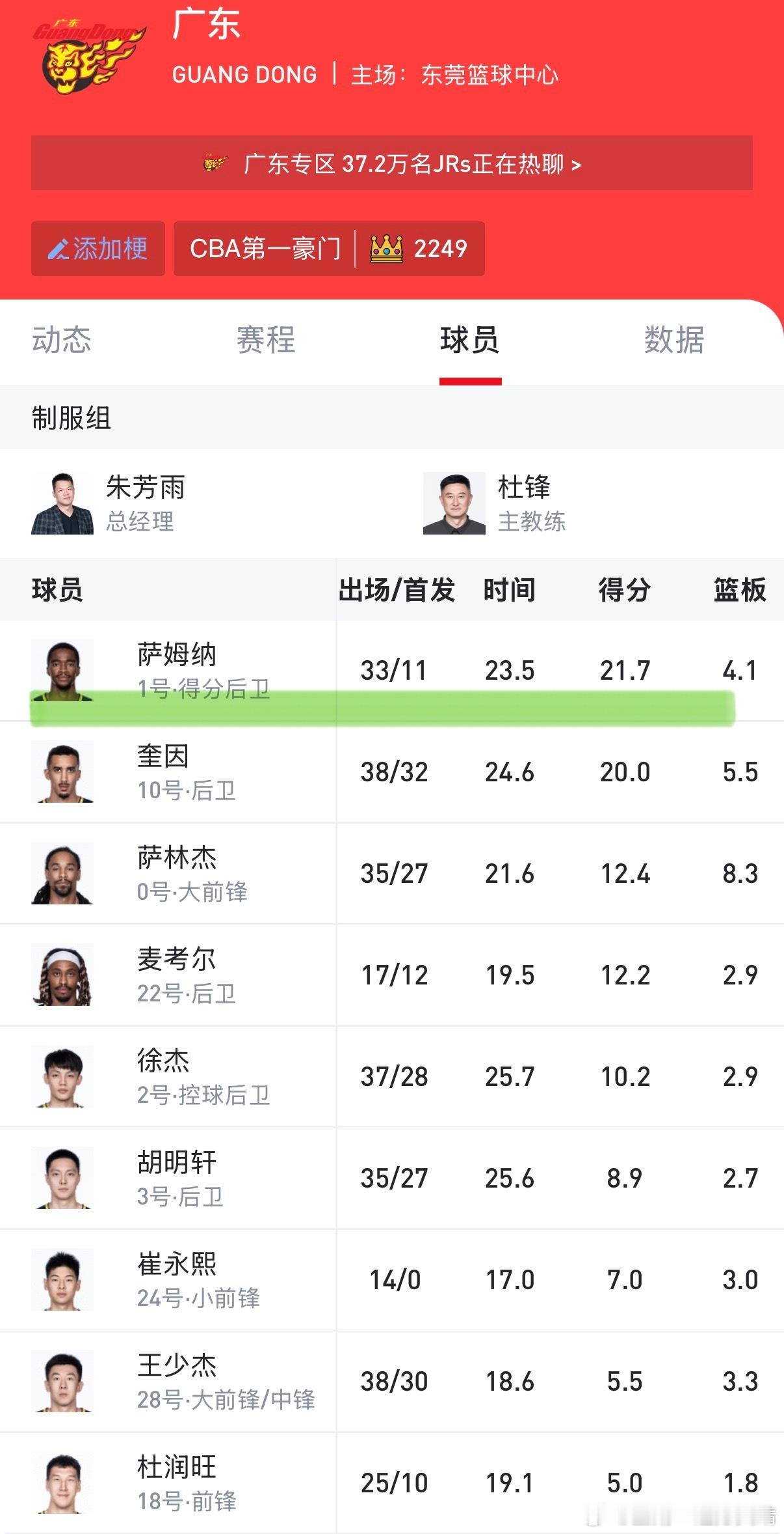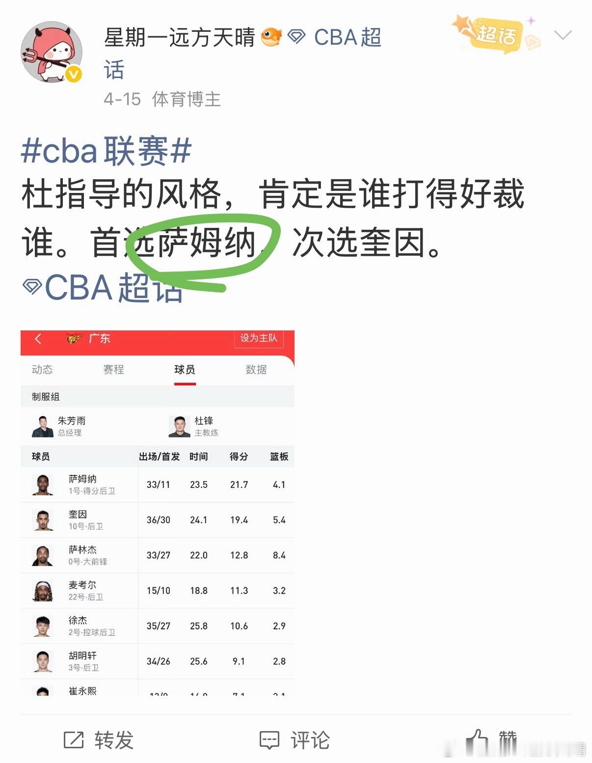 CBA联赛我说什么来着,杜指导裁员首选萨姆纳。因为萨姆纳得分太高了,不符合广东