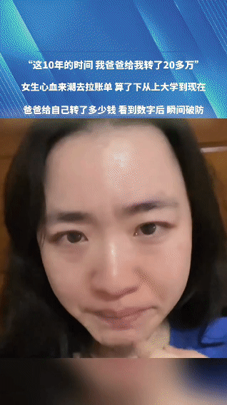 不看不知道,一看吓一跳。女孩闲来无事,翻看父亲给她的零星转账,结果10年时间,竟然达到23万元,女孩瞬间破防了。 转款记录从2015年开始,第一笔转款是学费5000元,第二笔是生活费1500元,后来是读研究生期间的费用,再后来是工作了,父亲给的补贴。 早些年大家就在算账,把一个孩子供到上大学要多少钱,供到读研究生要多少钱,如果孩子出国,可能更是天文数字。 其实女孩的这个数字只能是中等数字,只是天下当父母的,很少将这个账拿出来算。 偶尔出现母亲向孩子索要养老钱的案例,也只见老母亲泪眼婆娑地说,你们把当年的房租钱(意即母亲十月怀胎的艰辛)给我。 大多数的父母是不愿意去算自己究竟为孩子付出了多少的,因为大家觉得这个数字确实没有什么意思。 所谓传宗接代,人类社会不就是这样传承下来的吗?父母对自己子女的付不是天经地义的吗? 所以世间人不缺父爱母爱,除非父亲母亲去世得早。 而父母亲无私地付出,是不求回报的,过去虽然有养儿防老的说法,但又有几个当父母的真愿意当孩子的累赘呢? 当父母将孩子养大成人之后,总要想着把自己的养老金存够,为的是某一天老了病了动不了了,不致成为儿女的负担。 所以世间父母往往缺少儿女的关爱,因为儿女早已把关爱投入到下一代的身上。 难得有这个女子的“闲心”,我们相信她是一个孝顺的孩子,因为她懂得感恩。 谁言寸草心,报得三春晖。不是吗?