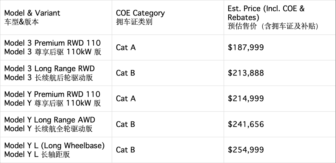 外媒整理对比发现,自2021年初特斯拉进入新加坡市场以来,受到当地高昂拥车证(COE)费用的影响,新加坡消费者购买特斯拉的成本相对较高。