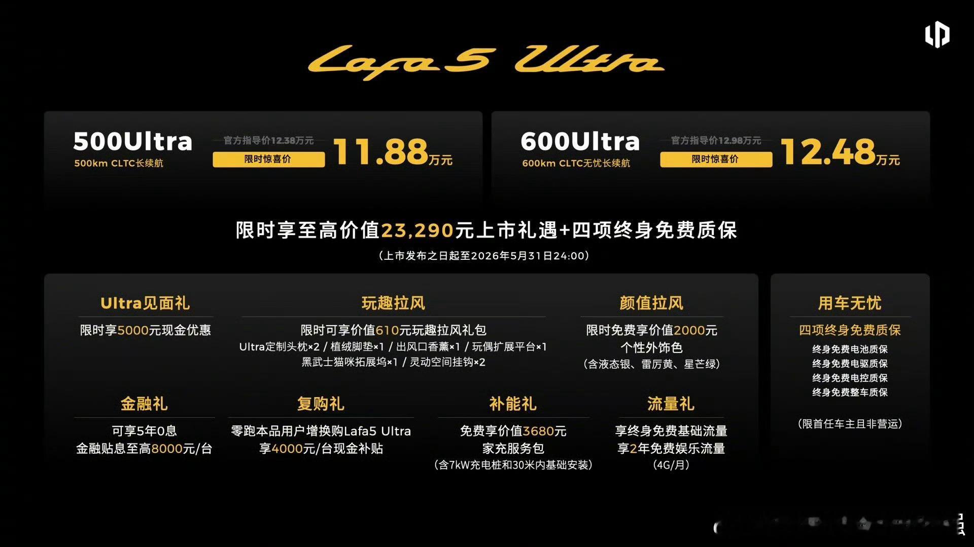 年轻人买车,悦己才是王道!当下,年轻人选车的核心逻辑从“工具最优解”转向“自我表达+情绪价值最优解”,车不仅是出行工具,更是生活方式、个性潮流符号,无需别人定义,取悦自己才是核心。零跑Lafa5 Ultra北京车展正式上市,售价11.88万元起。作为 Lafa5车系顶配版型,Ultra版本沉淀Lafa青年所青睐的“好看、好开、好品质”基因再升级,满足年轻人对设计、质感、驾控的核心诉求,主打一个提升车主驾驶幸福感。