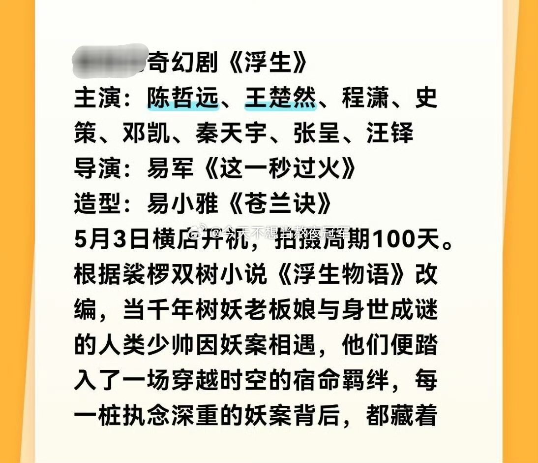 🍉🍉桃单元奇幻剧《浮生》,5月初横店开机