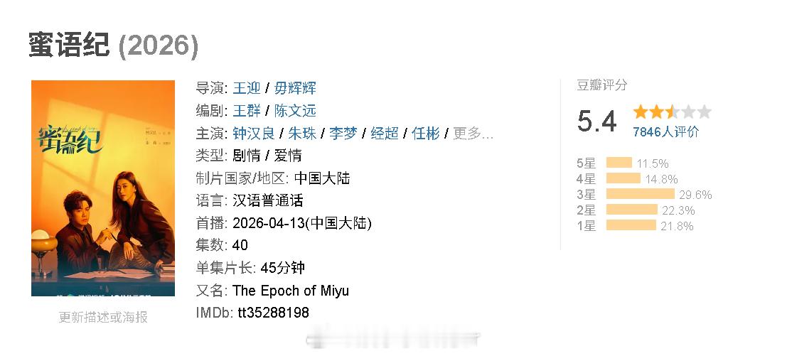 钟汉良朱珠蜜语纪开分5.4你觉得高了低了?