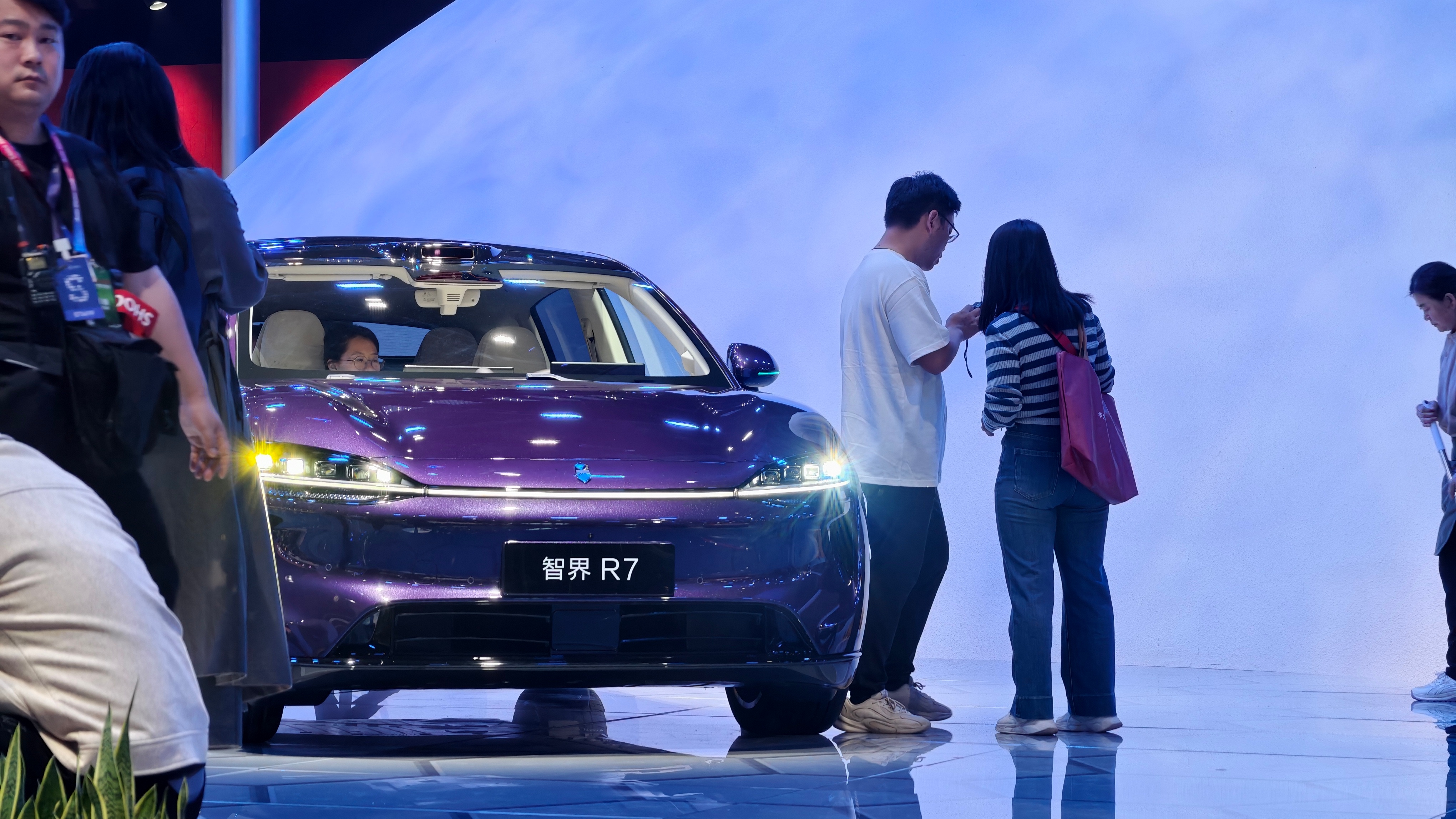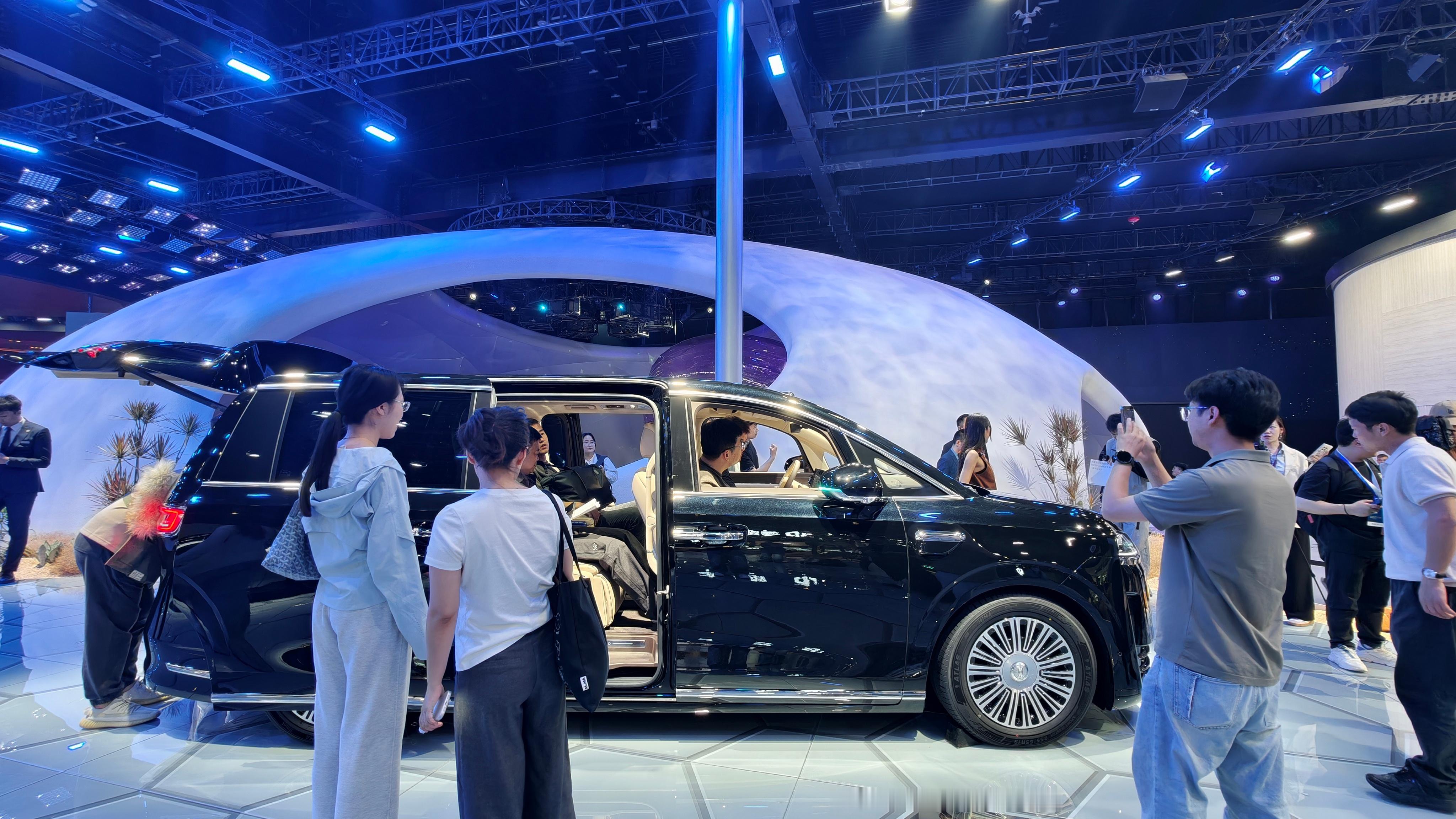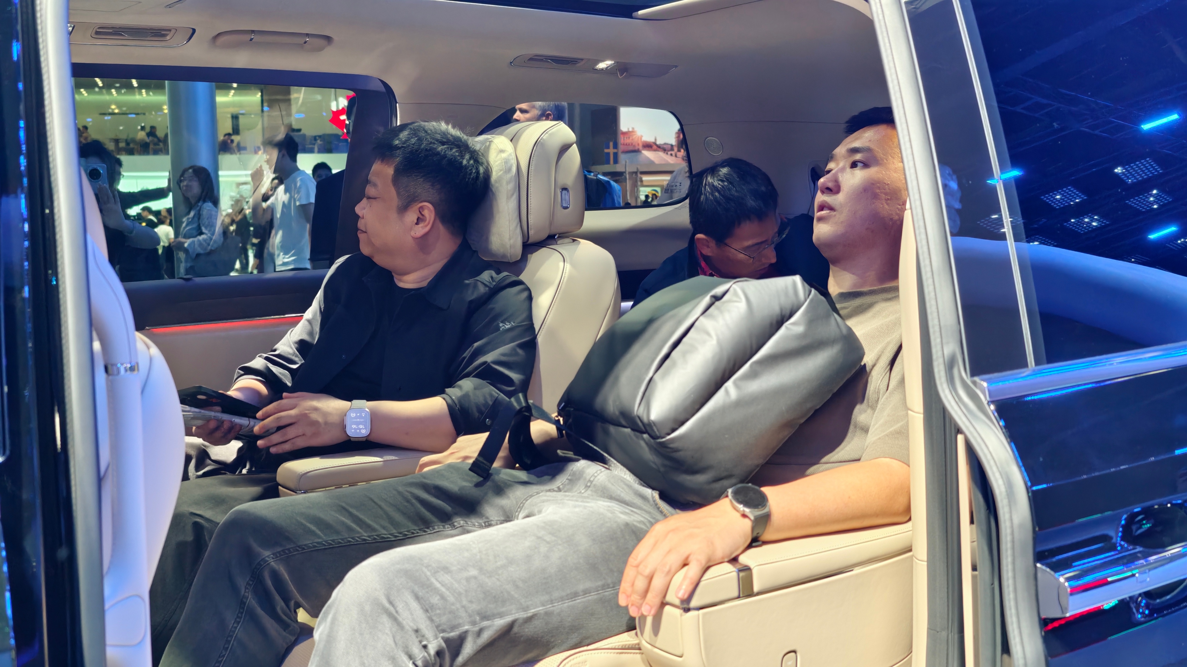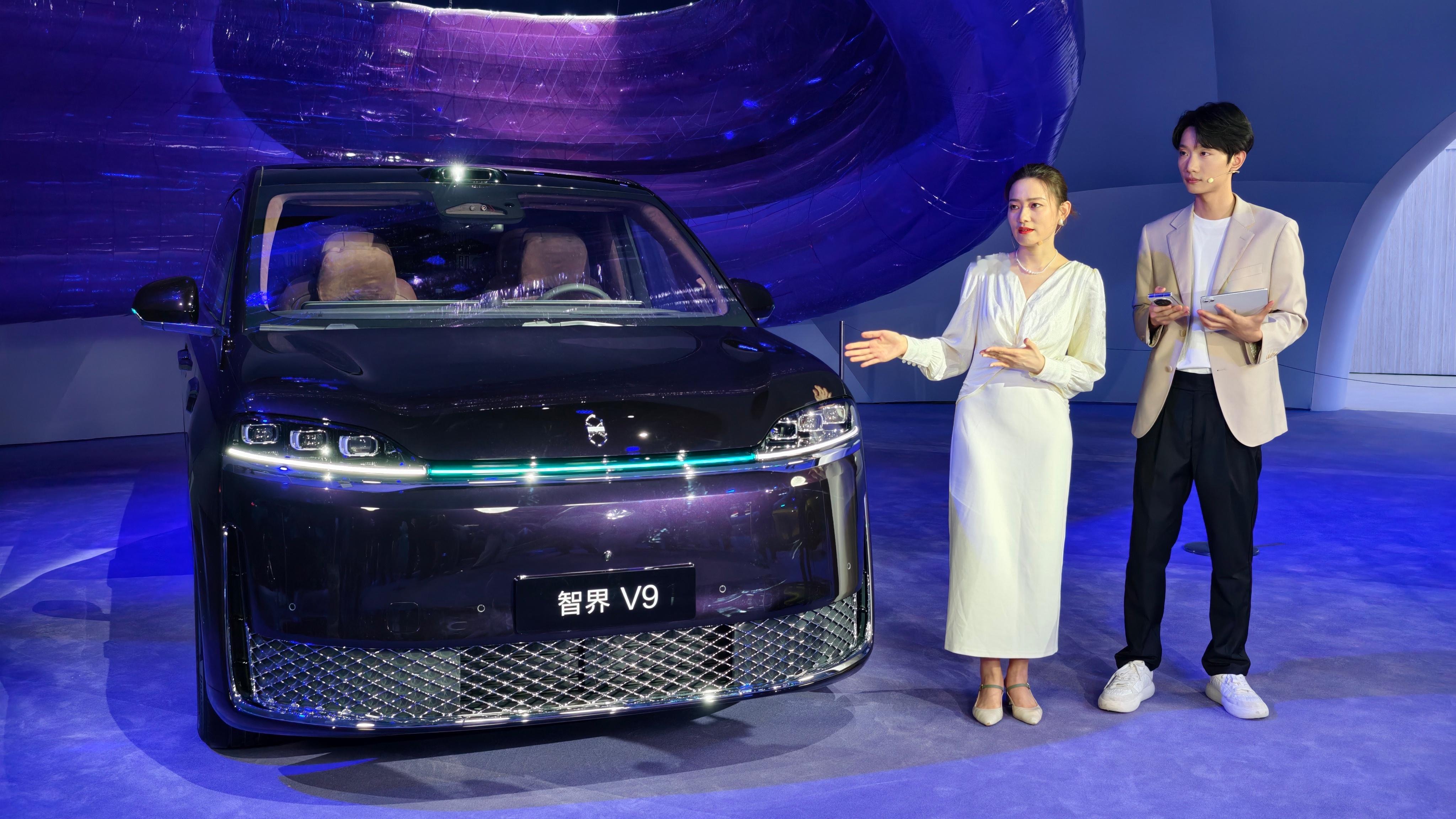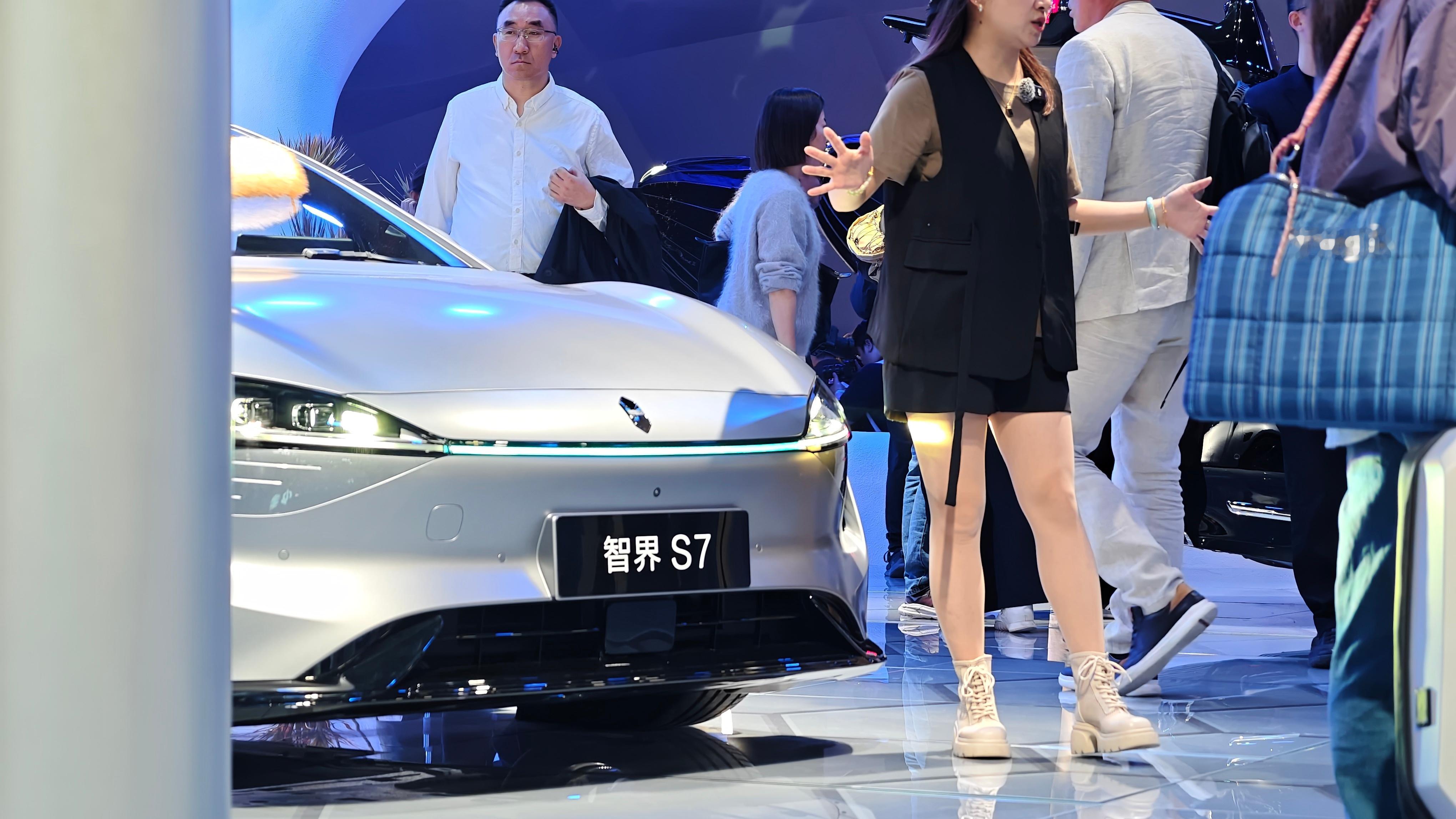智界展台核心自然就是台上的智界V9,鸿蒙智行首款旗舰MPV,之前咱们拍过静态视频介绍过,这次北京车展它是绝对的主角之一。预售价39.98万-52.98万,满配情况下你能得到什么?二排零重力座椅,180度旋转,直接跟第三排面对面开会,后轮转向让5米3的车掉头一把过,鸿蒙ALPS健康座舱带制氧机;华为悦彰43个扬声器。什么叫移动行宫?什么叫MPV科技车皇?目前最顶的出行享受,就在这了。再看看旁边的S7和R7,我也是这两台车的车主,S7开了一万多公里,现在放在公司当工作车了,平时真就跟牛一样使,一点毛病没有,也是我买的第一台鸿蒙智行的Ultra车型,我特别喜欢。R7我买的还是首批,后来改款的大灯和新加的绿色确实帅,我挺馋的,要个性还要全能一些,R7是不错的选择。 北京·中国国际展览中心顺义新馆