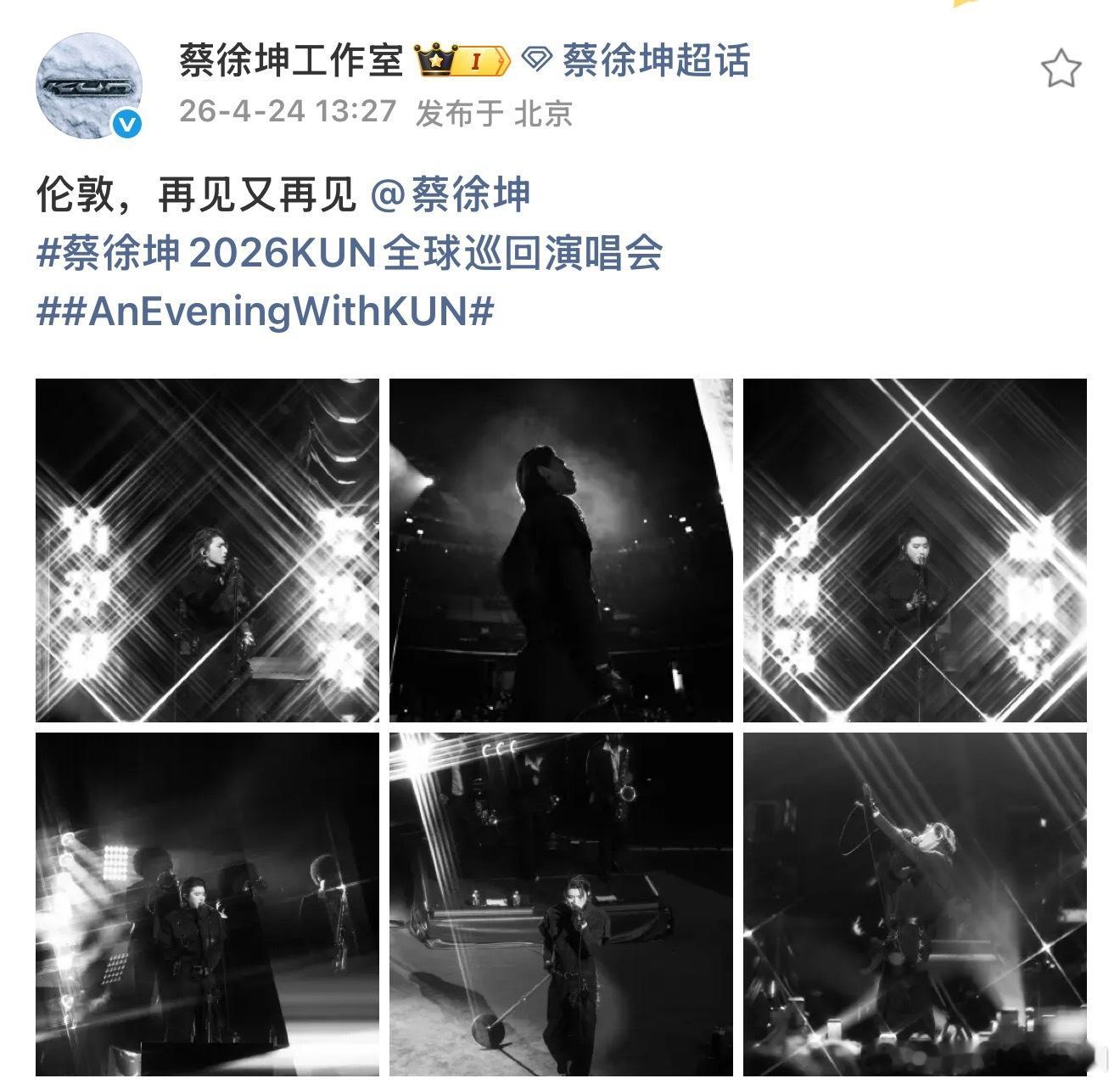 蔡徐坤时隔七年再巡回到伦敦蔡徐坤时隔七年重返伦敦七年辗转,初心未改,蔡徐坤重返伦敦开启巡演行程。沉浸式舞台搭配全新演绎,在异国城市唱响旋律,奔赴一场跨越山海的双向奔赴。
