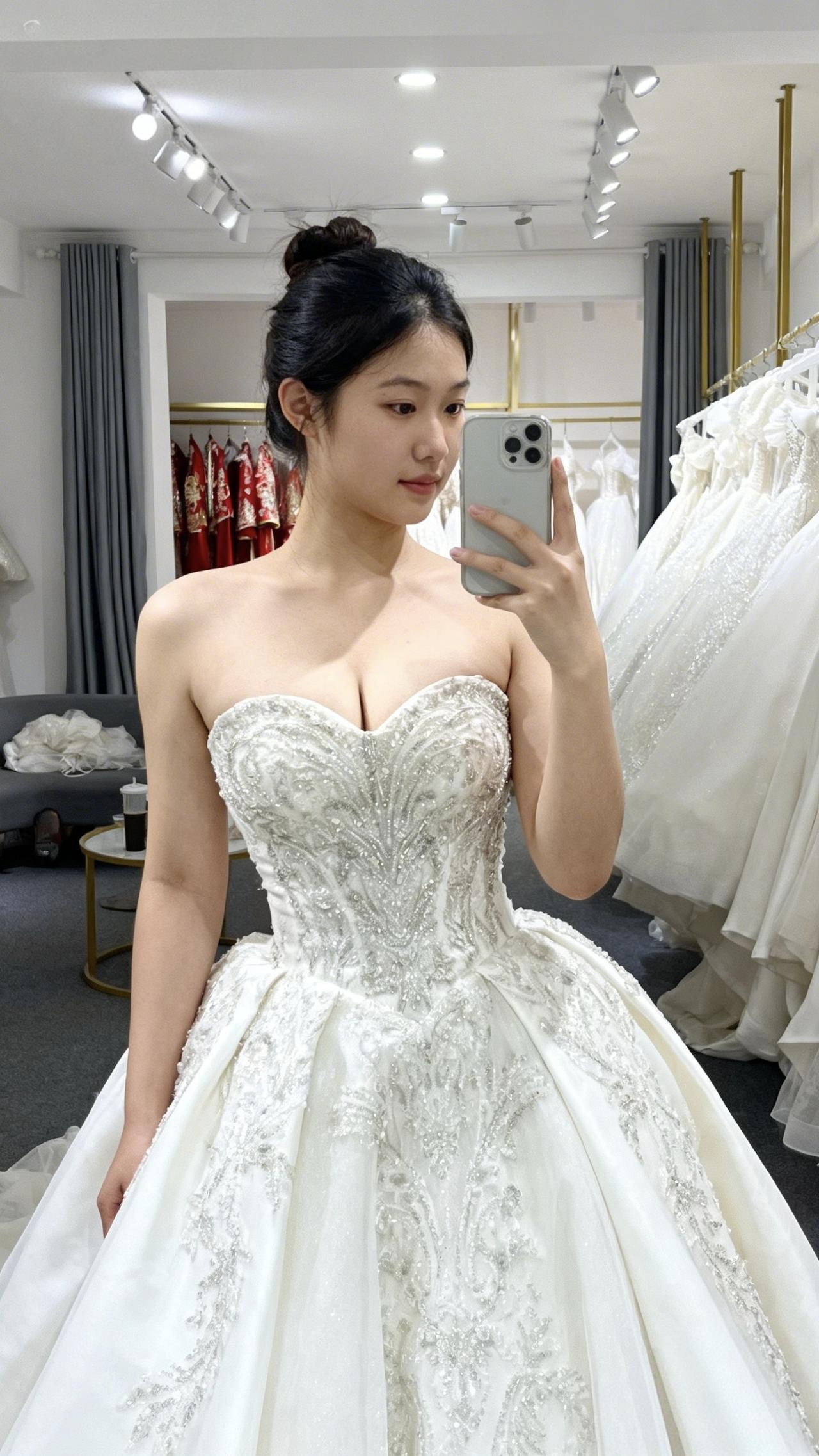 也许这是每个女生最漂亮的时刻,精致的婚纱穿着身上,仿佛就是从童话中走出来的公主。白色的裙摆随着走动轻轻摇曳,像是荡漾在湖面上的涟漪,美得动人心弦。这件婚纱不仅仅是一件华美的服饰,更是对爱情和未来美好生活的憧憬与寄托。