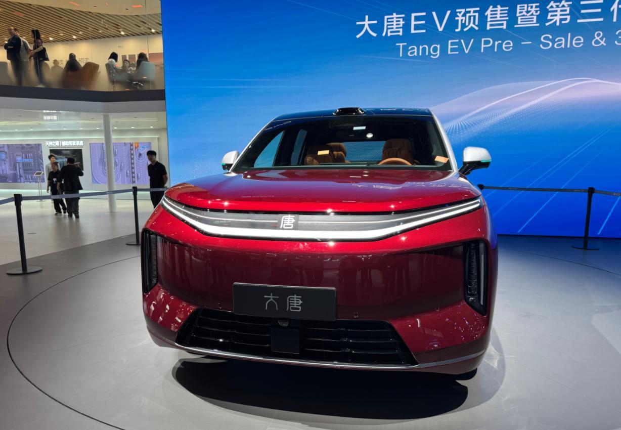25万起!比亚迪大唐EV开启预售,D级旗舰SUV这次真来了 2026北京车展上,比亚迪王朝网全新D级旗舰SUV——大唐EV正式启动预售,价格区间25万-32万元。说实话,这个价位配上它的尺寸和配置,吸引力不小。 先看身材:车长超5.2米,轴距3130mm,标准的大型SUV体格。外观用上家族式前脸,贯穿式日行灯+竖状大灯,简洁有力。侧面配有激光雷达,支持天神之眼智能驾驶。密辐轮毂+贯穿尾灯,稳重又有辨识度。 车内采用2+2+3七座布局,主副驾零重力座椅,第二排双零压航空座椅,舒适度在线。车机搭载3nm座舱芯片,配27扬声器帝瓦雷音响、全景天幕,还有防晕车模式,对家人很友好。 动力方面,提供单电机后驱和双电机四驱。四驱版百公里加速3.9秒,一台大尺寸SUV能有这个表现,日常超车绰绰有余。续航上,搭载比亚迪第二代刀片电池,最大续航950km,配合闪充技术,长途出行心里有底。底盘配云辇-A双腔空气悬架+道路预瞄,还有蟹行模式和后轮转向,窄路掉头更轻松。 大唐EV计划今年上半年正式上市。25万起买一台D级新能源SUV,配置、空间、续航都挺能打。感兴趣的朋友,可以持续关注。【来自懂车帝车友圈】