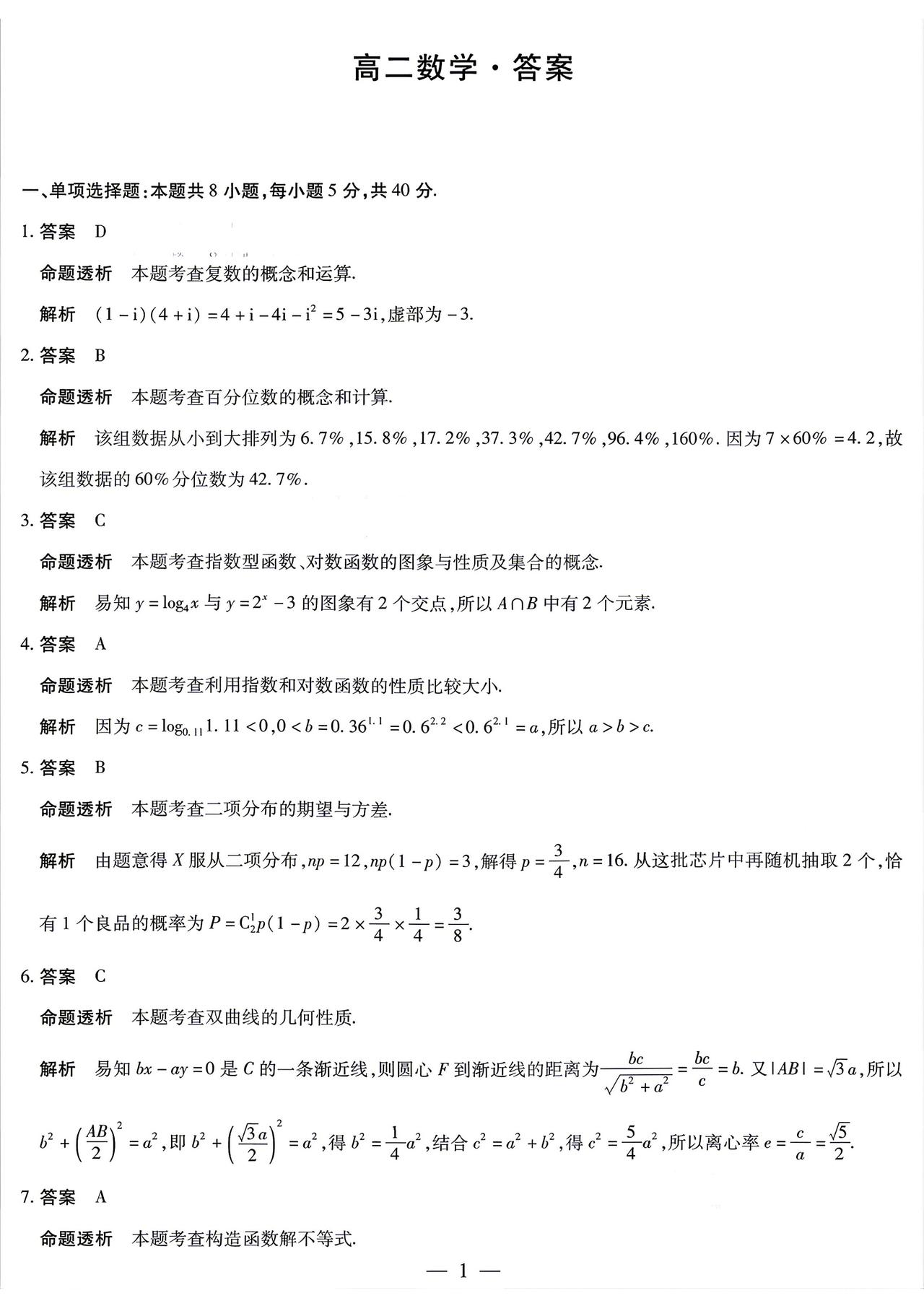 高中数学试卷速递