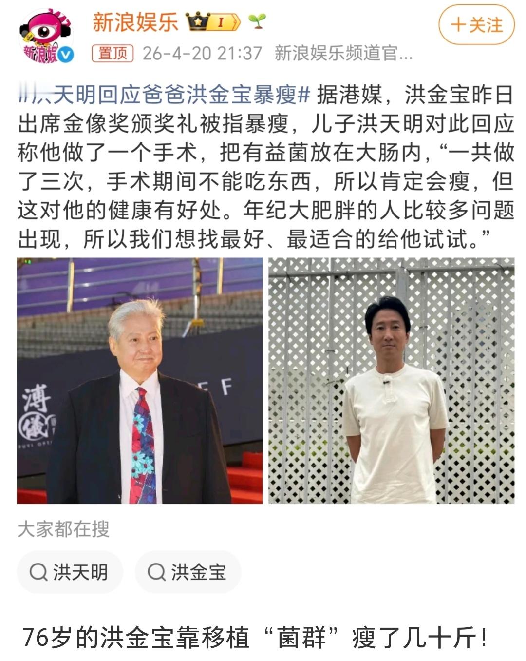 洪金宝移植菌群,瘦了几十斤但是评论说的方法不一定对吧