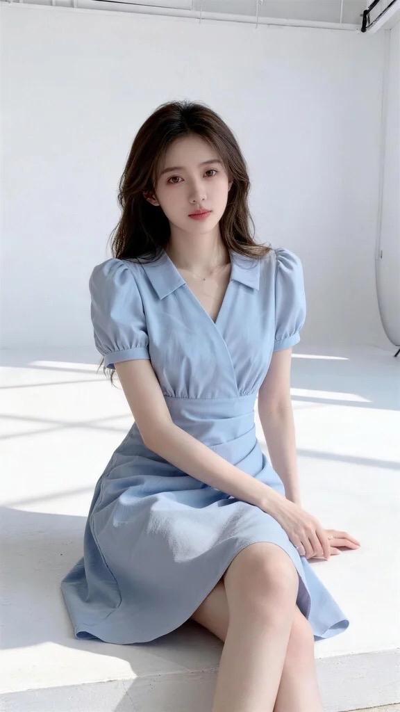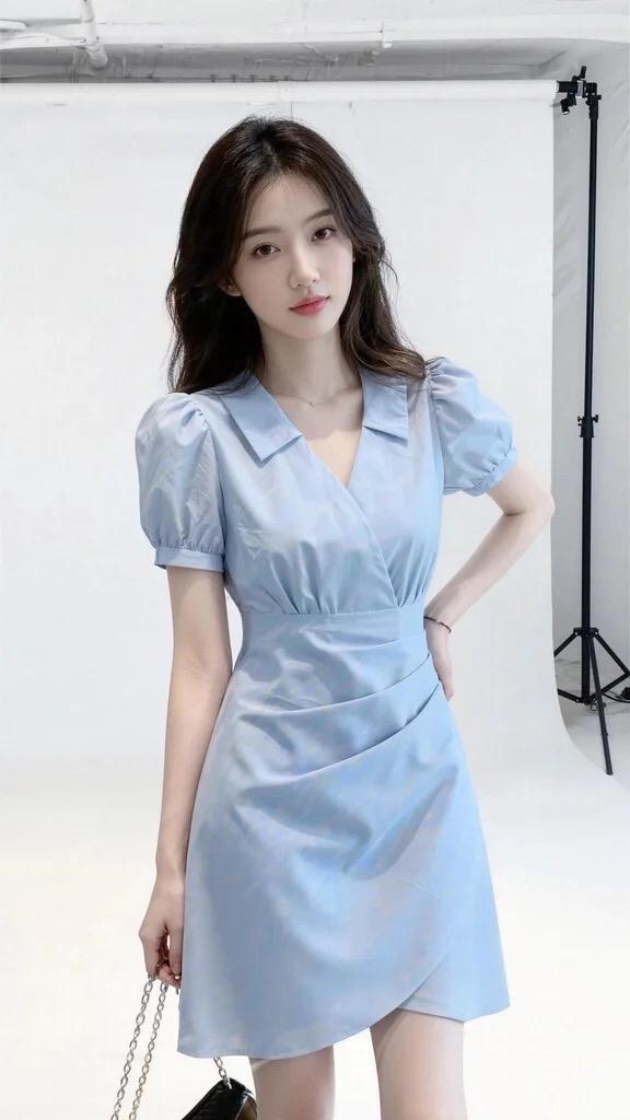 通勤连衣裙,夏天有不爱穿裙子的吗甜甜的小裙裙 夏天穿搭 温柔蓝色连衣裙 显瘦浅蓝色连衣裙