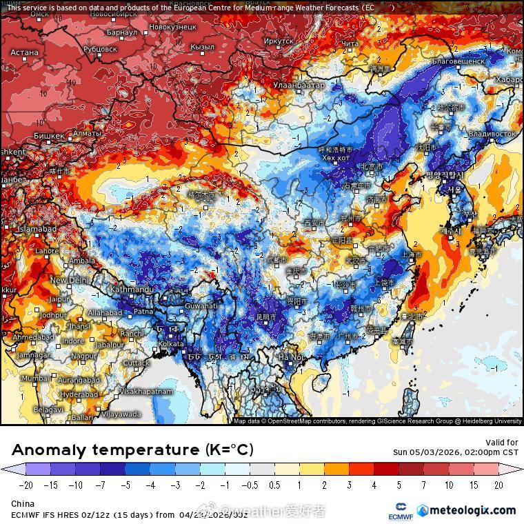 冷空气 目前来看,五一假期期间可能会有冷空气东移南下影响我国中东部地区,看着实力还不弱。但预报还有一些不确定性,还需要关注后续预报。