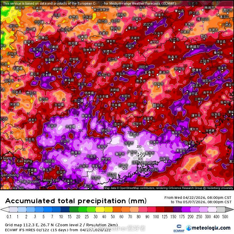 气象观察团 中长期的降雨格局将发生一些改变,华南地区将逐渐进入降雨(暴雨)集中期,累计降水量大,真正的前汛期暴雨要来了。