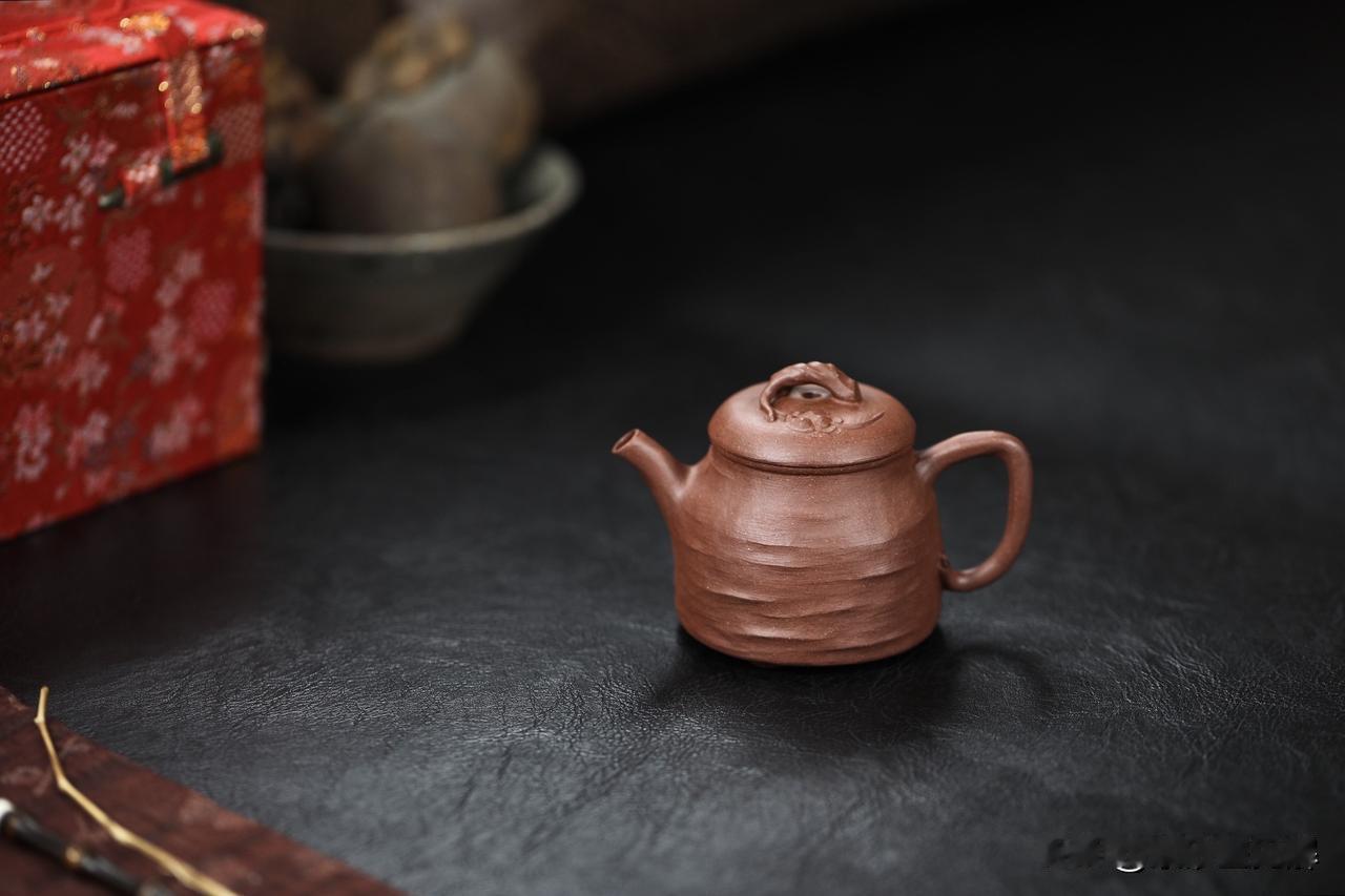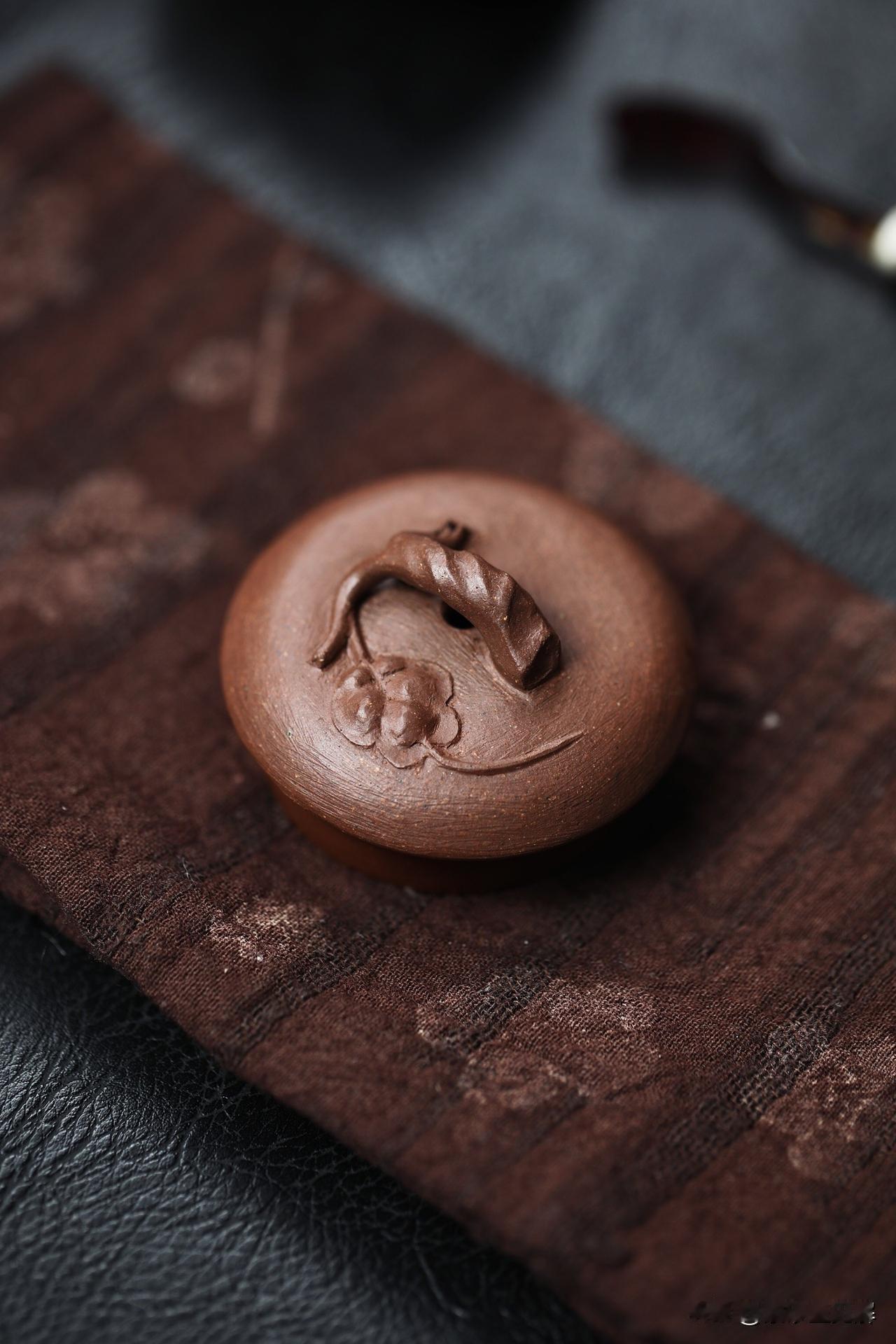 亦梅|全手工丨古法手捏 容量120cc丨早期老紫泥 壶身隐现的微妙肌理,源自手工捏塑的独特印记,于不规则中透出质朴韵味,尽显古雅拙趣,又饱含童真意趣。