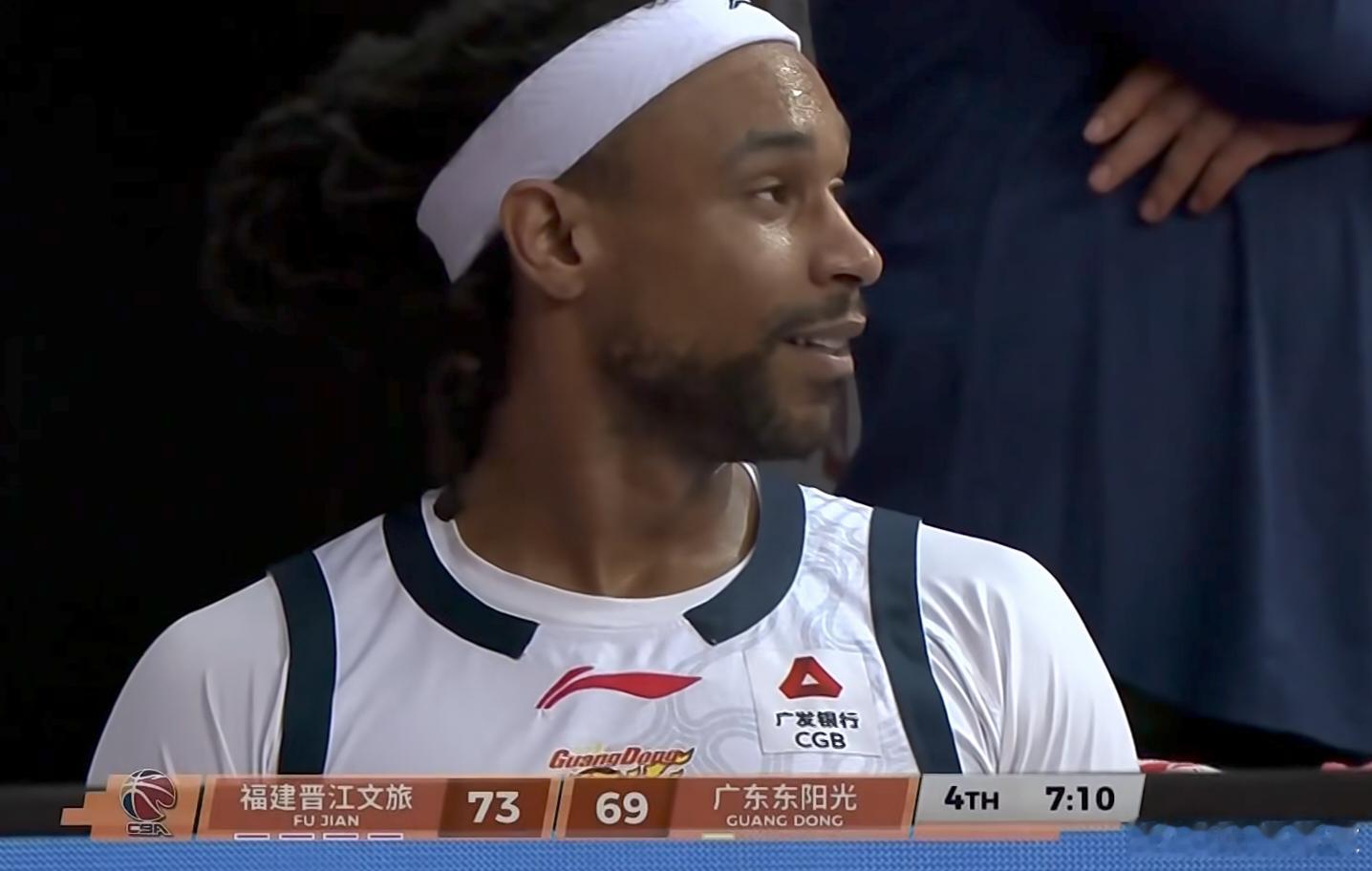萨林杰这职业态度不知道说什么好了,一己之力带崩全队,杜锋指导终于把他换下,目前广东队落后4分了 福建男篮vs广东男篮