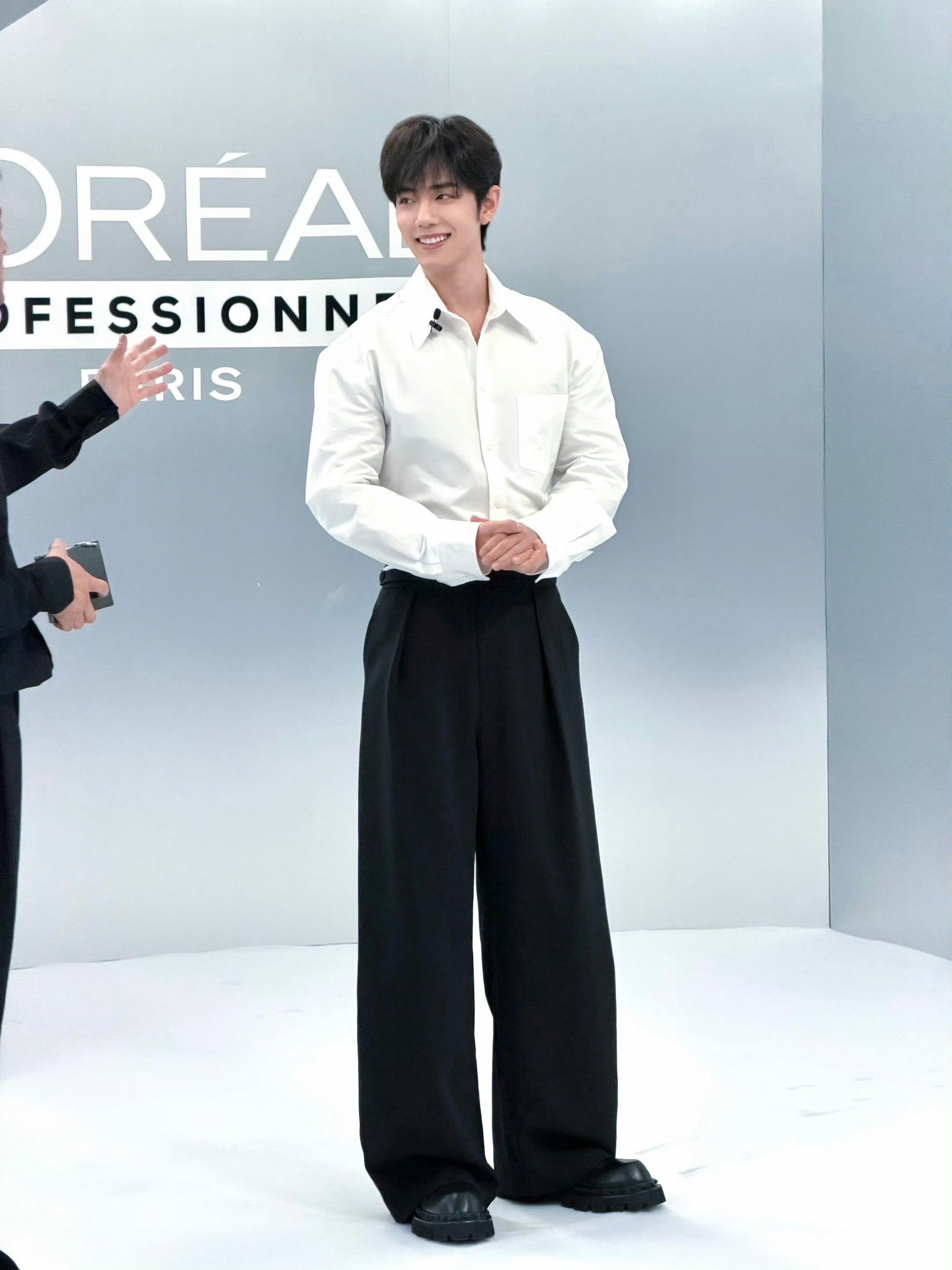 肖战直播白衣少年!帅帅肖战用手给主持人挡喷雾