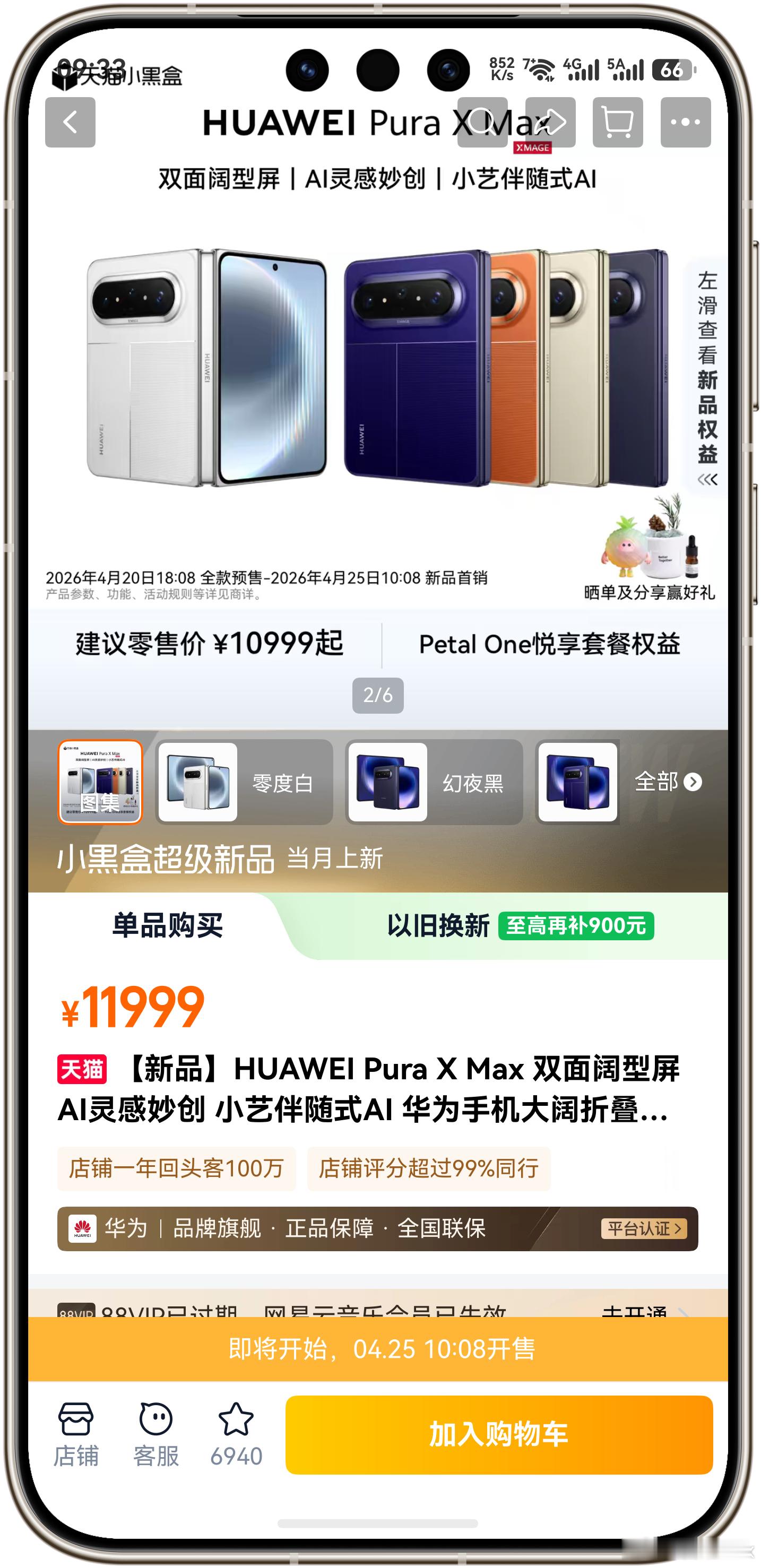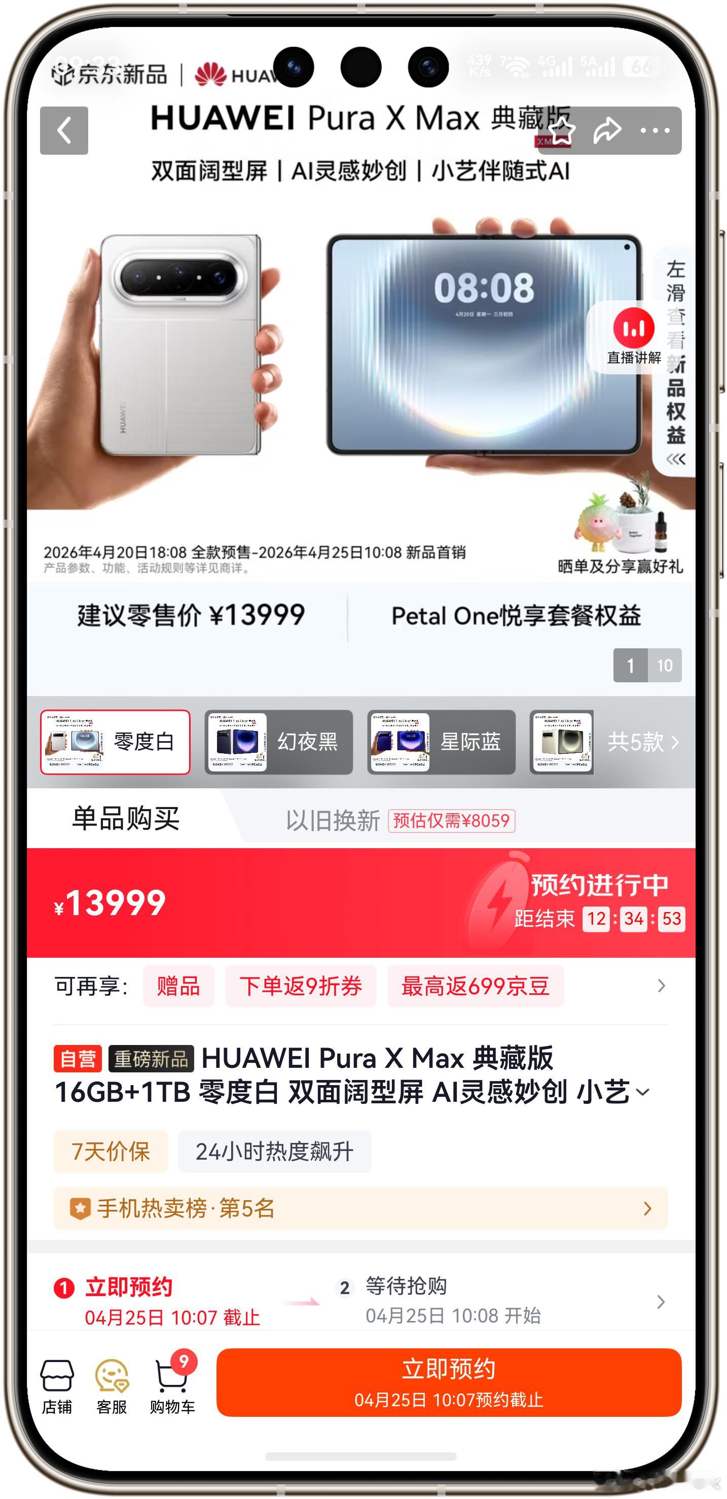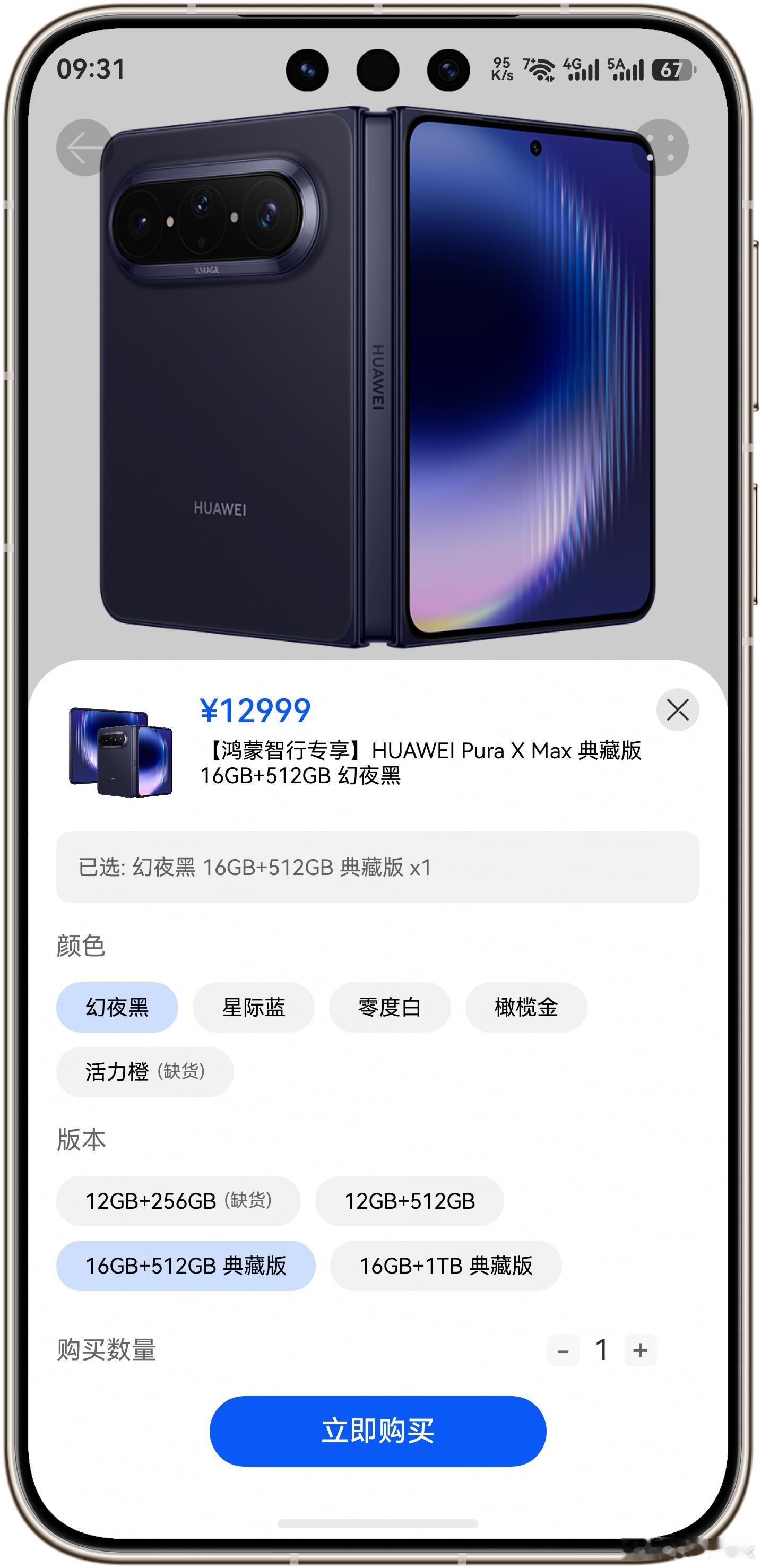 华为Pura X Max在华为官网、京东、天猫都缺货,但是在鸿蒙智行App上现货开售,大部分版本都有货。