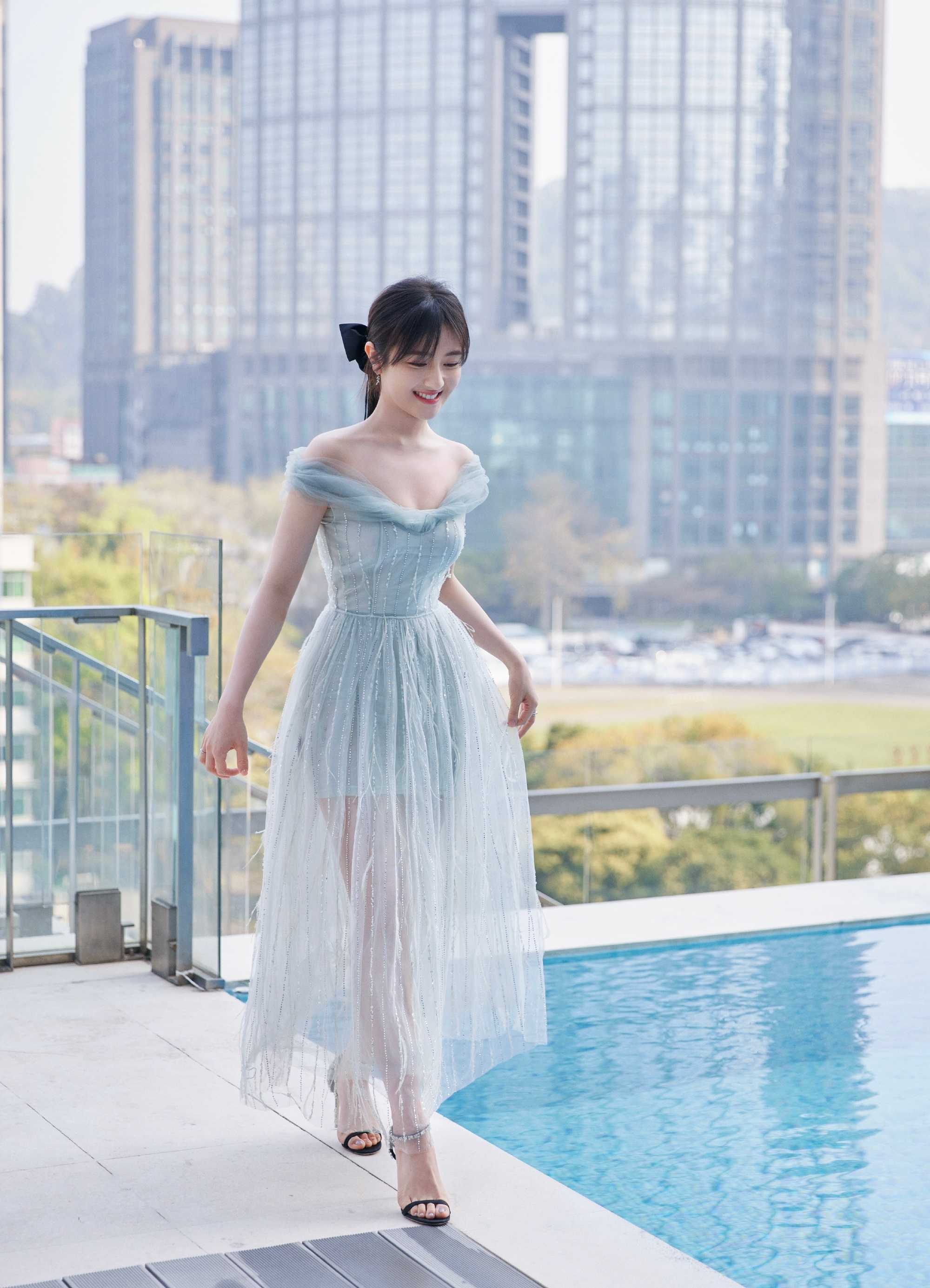 李兰迪甜美风,薄纱裙细高跟,邻家少女的感觉。李兰迪