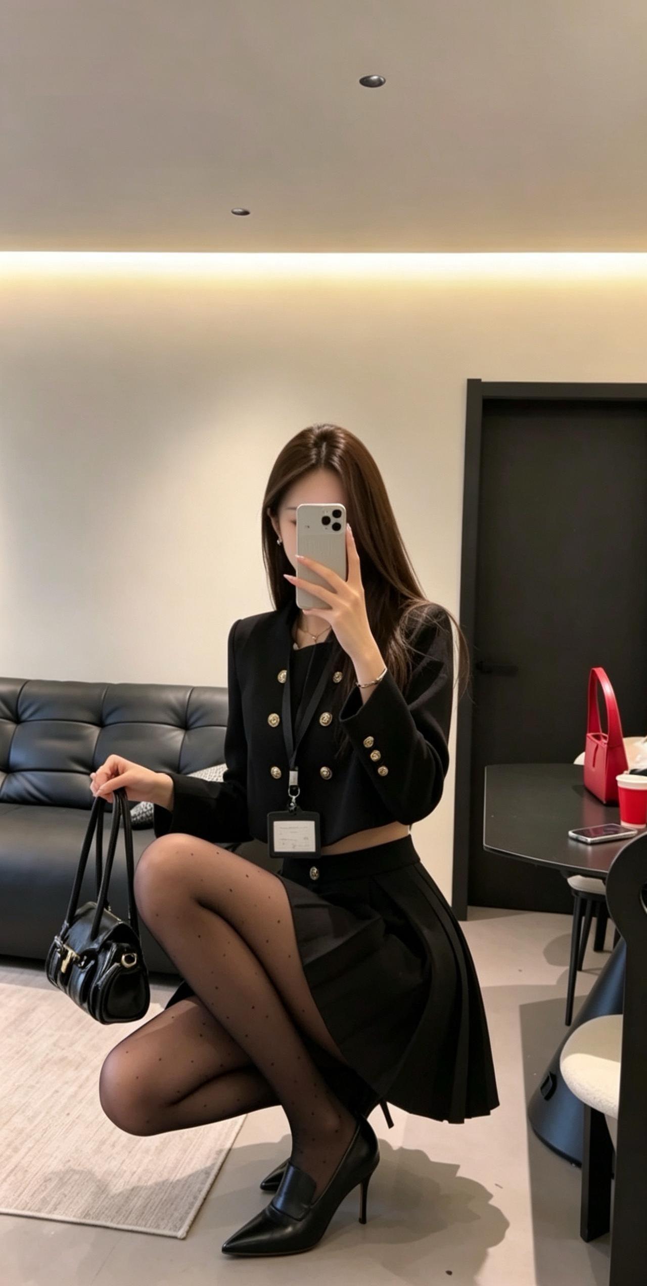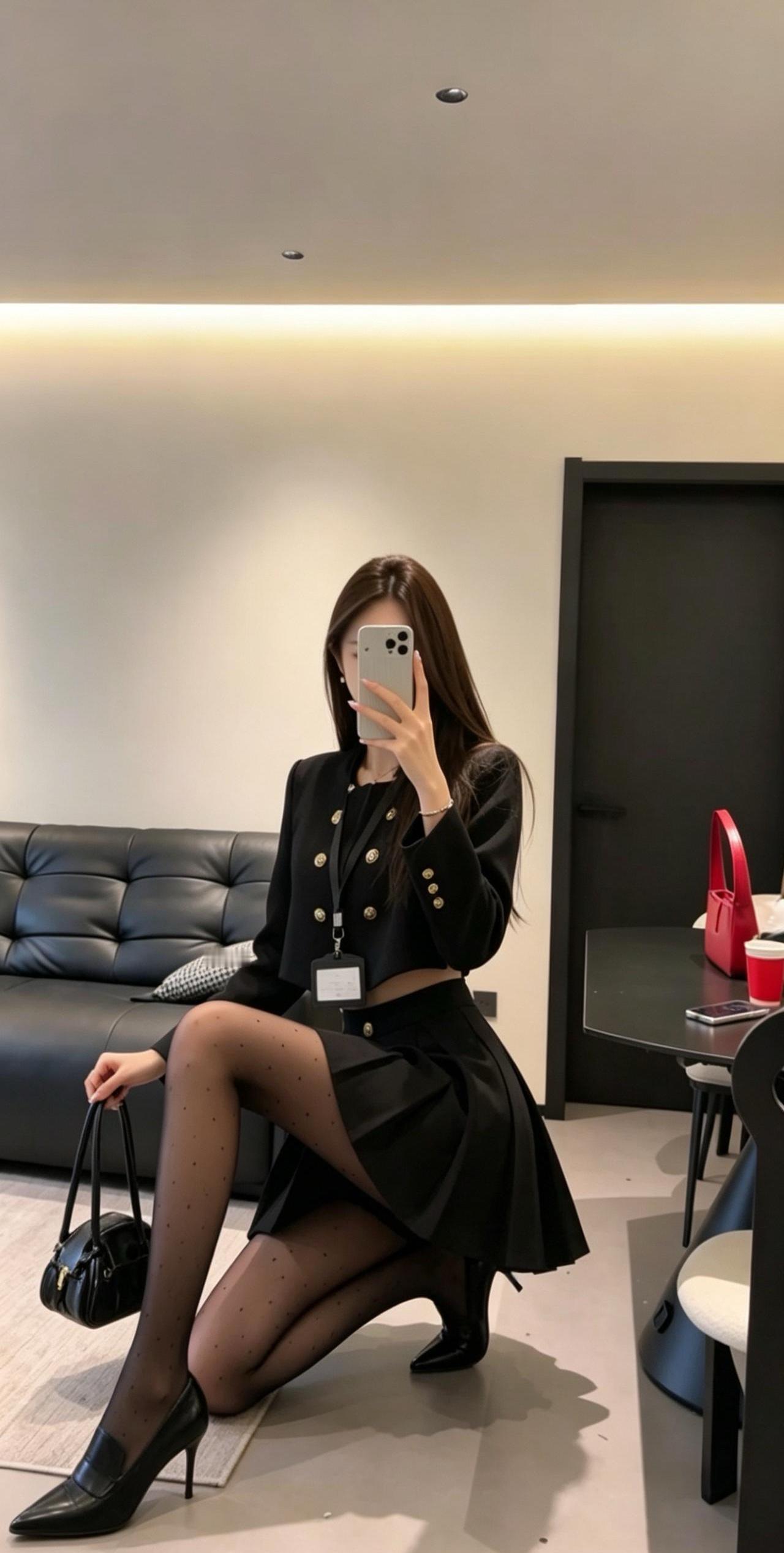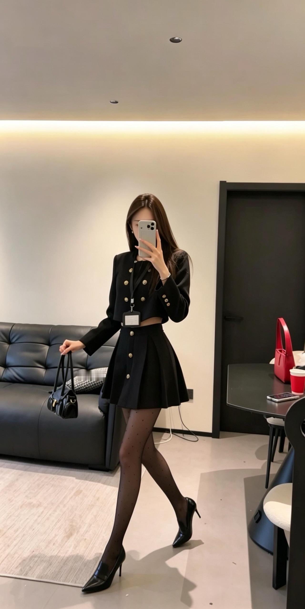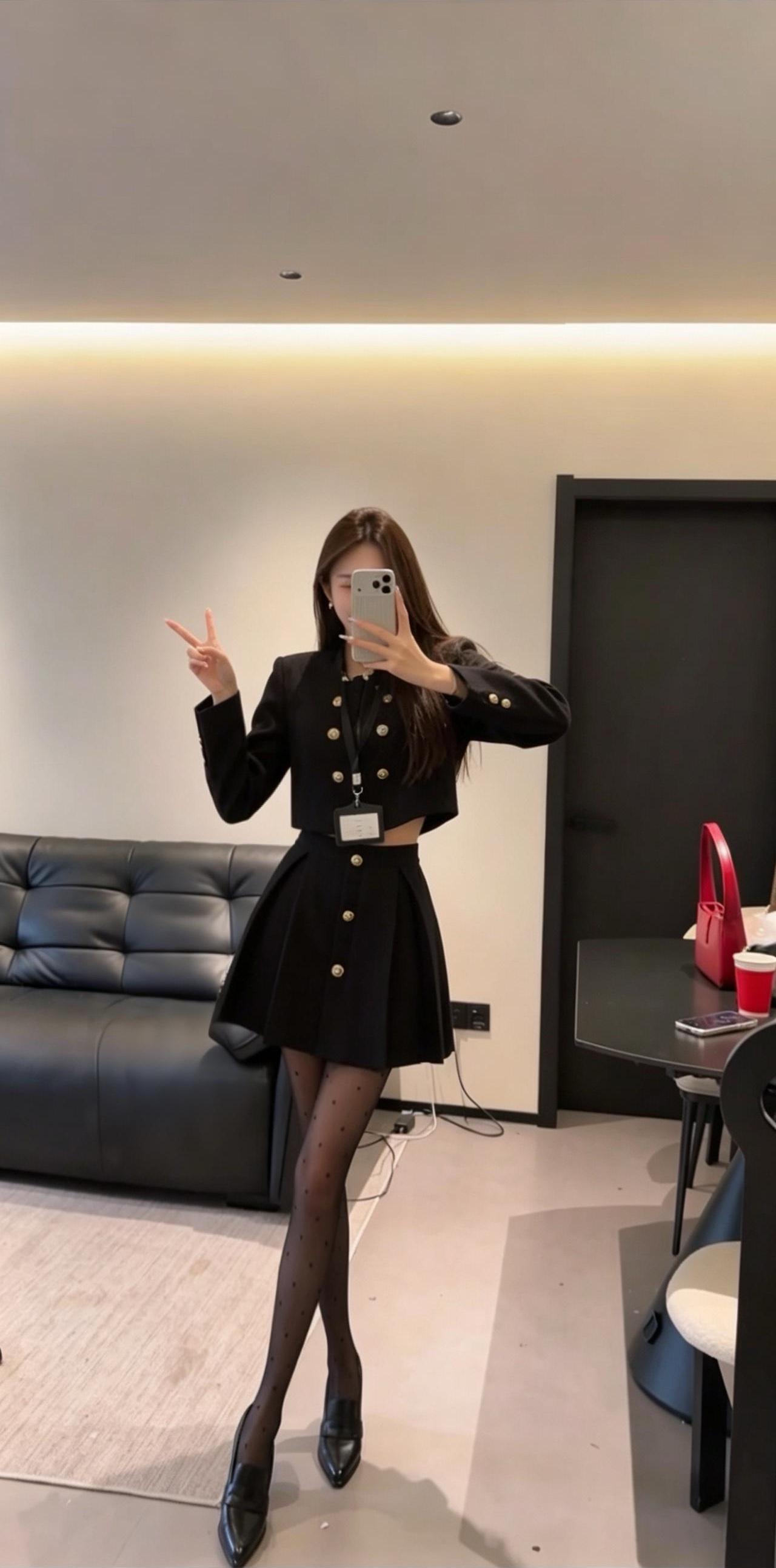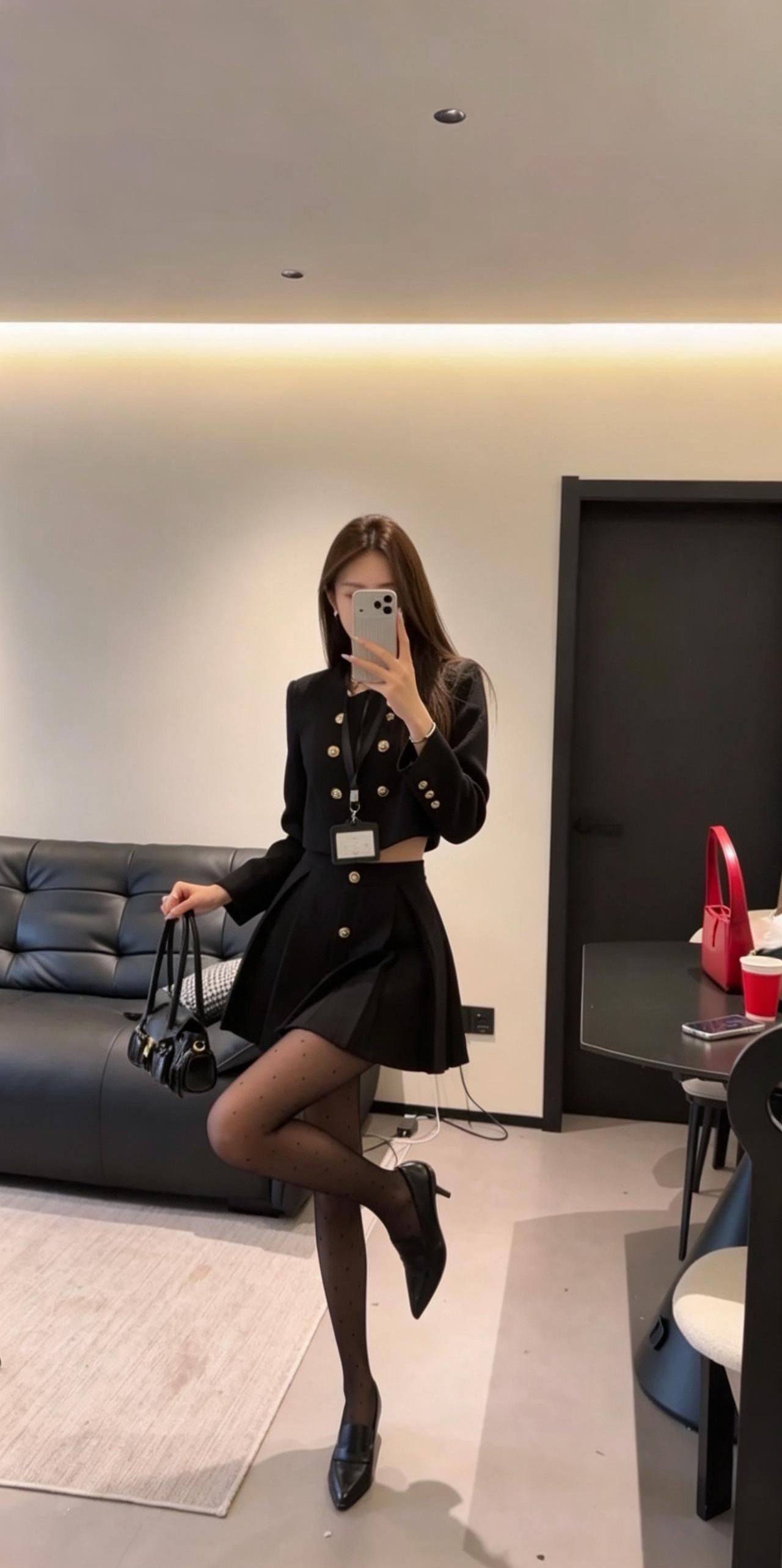 正常穿搭推荐,无不良引导。 今日推荐是通勤少女风。 • 核心单品:短款金扣小香风外套搭配高腰百褶短裙,自带高级贵气感。短款衣身+高腰裙装的组合,是显高显瘦的王牌搭配,能轻松优化身材比例,打造利落又高挑的视觉效果。 • 点睛搭配:波点黑色打底裤与尖头高跟的组合,弱化了套装的正式感,增添了柔媚的女人味。波点黑色打底裤打破了纯黑的单调感,和金色纽扣形成“黑白+金色”的经典配色,让整体造型的高级感直接拉满。 • 整体风格:属于「又纯又欲的通勤少女风」,完美平衡了干练与温柔、正式与精致,是不挑身材、适配多种场景的百搭款。 二、适配场合 • 日常通勤/职场:适配度拉满!小香风自带的正式感,既符合职场得体的着装要求,又不会像刻板西装那样呆板,干练又有气质,轻松打造专业又优雅的职场形象。 • 约会/下午茶:套装的贵气感搭配黑色打底裤的柔媚感,自带氛围感,拍照超出片。同时又不会过于暴露,是约会时自带好感度、温柔又有气质的穿搭选择。 • 轻聚会/姐妹局:自带精致贵气感,在聚会中轻松脱颖而出。搭配高跟鞋气场拉满,无论是单人照还是合照都很出片,轻松成为全场焦点。 • 轻商务场合:搭配同色系低跟鞋,就能弱化整体的性感感,保留干练气质,适配非正式的商务洽谈、部门聚餐等场景,得体又不失个性。