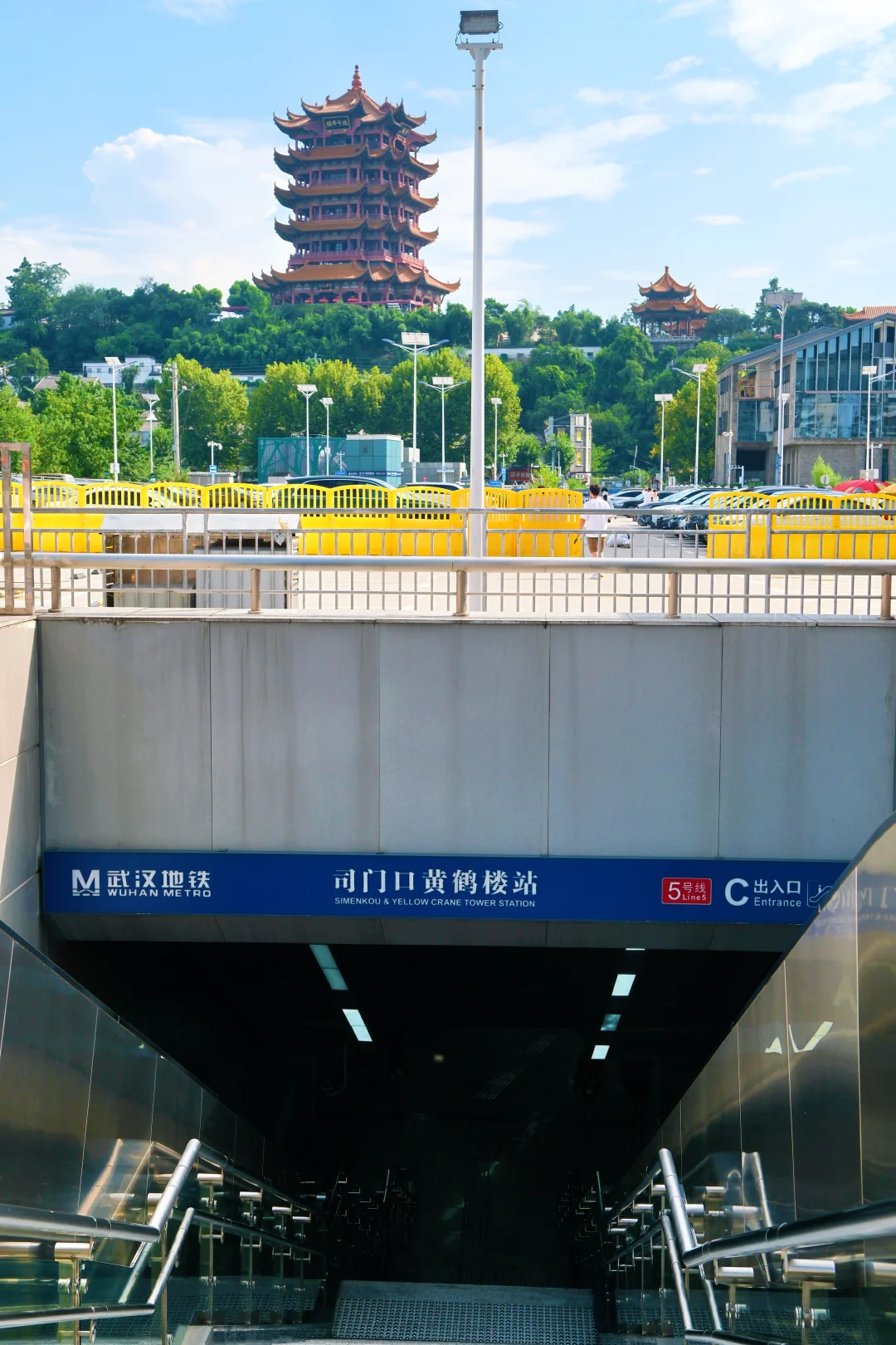 7️⃣拍完笑脸,旁边公交车站台边,可以拍到站台黄鹤楼同框