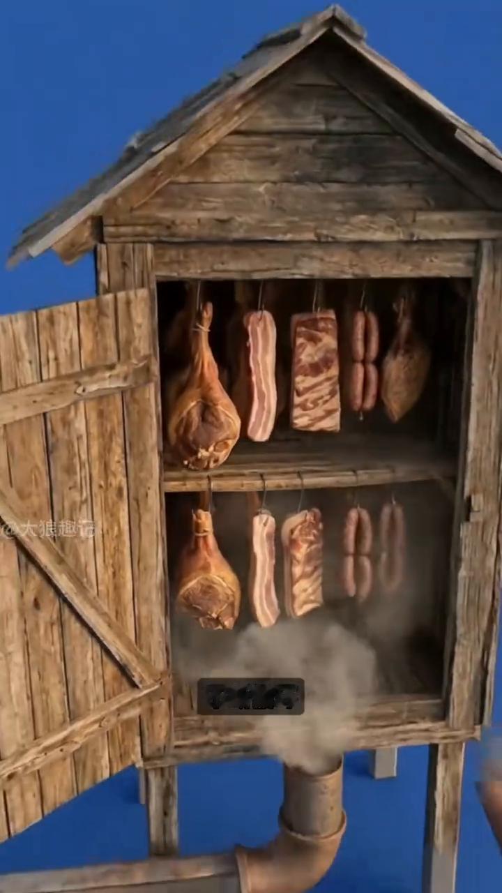 奇怪熏腊肉法。 注意看,他们熏腊肉的方法很奇怪,不是把肉挂在火上烤,而是先在地下打出一条专门走烟的通道。火在外面单独燃烧,烟不会直接进熏房,而是被迫绕一圈地下通道。这条通道就像一个天然的冷却层,烟一进去温度就开始下降,原本滚烫的烟在里面慢慢走散,热量被一点点吃掉。等从另一头出来已经不再带火,只剩刚刚好的烟。 等烟进了熏房,它不再负责加热,只做一件事把水分慢慢带走。这里没有明火,烟也是从外面送进来的,温度已经被提前处理过。进来之后烟开始围着肉流动,不断循环,最后从上方排出去。在这个过程中烟里的成分往里渗,不是停在表面,而是进入肉的内部,细菌、脱水、定位都是在这股烟里慢慢完成的。 这种做法其实就是一种典型的美国传统冷熏工艺,所以这种腊肉能放上好几个月,不靠冷藏也不太受天气影响。但真正卡人的地方不在结构,而在路径。火近一点温度就失控,通道短一点烟还没降下来就进屋,看起来只是多此一举。但正是这段绕路才让味道变得完全不一样。 很多人学的是步骤,但这套东西真正难复制的是环境、土层、距离、通道、时间少,一环都不成立。带不走这套路径就做不出同样的味道。