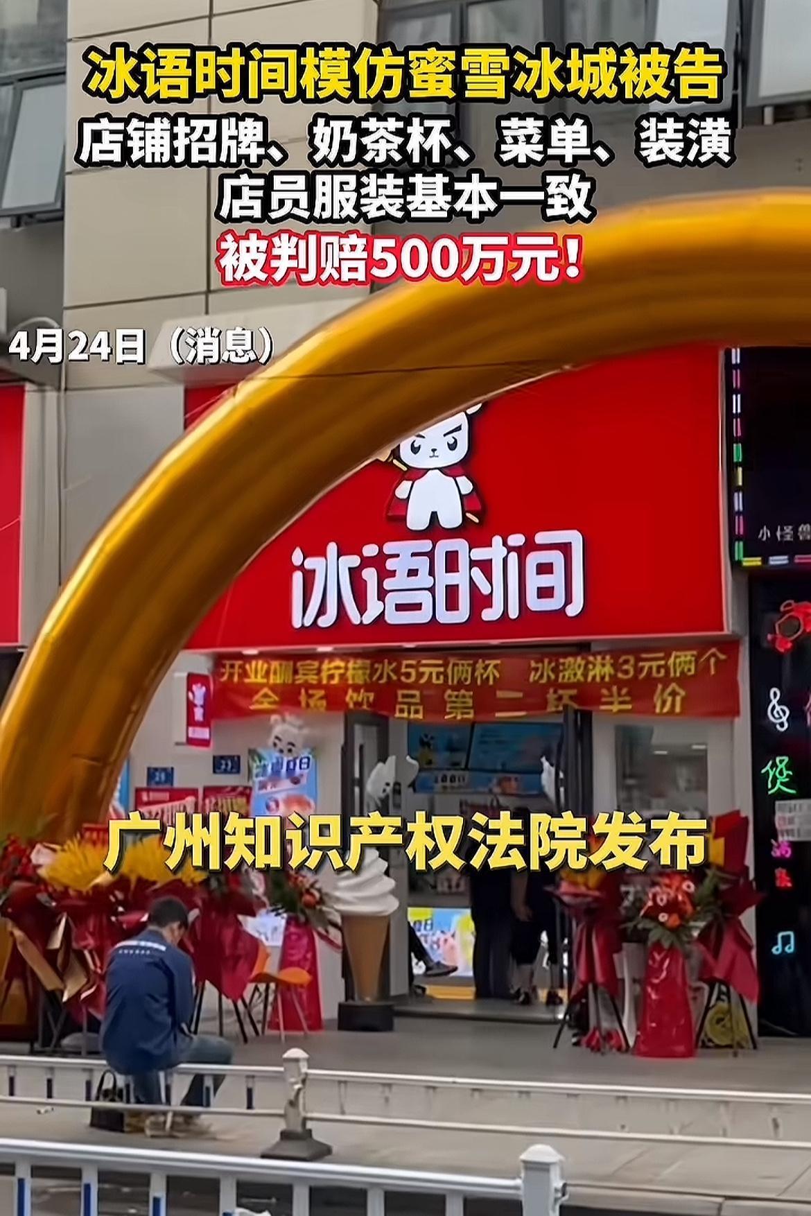 冰语时间店铺侵权案被判赔500万,这可真是大快人心!现在有些商家总想走捷径,看蜜雪冰城火了就全盘照搬。冰语时间的门头招牌、奶茶杯图案、店员工作服,甚至菜单上饮品名字都和蜜雪冰城如出一辙,还拿着这套抄袭的东西去各地招加盟圈钱,简直是明目张胆地侵权。 蜜雪冰城当然不会坐视不理,一纸诉状将其告上法庭。法院一审二审都毫不含糊,判冰语时间赔500万,加盟店老板也交了五千元罚单。这给那些投机取巧的商家敲响了警钟,做生意就得脚踏实地,靠抄袭永远走不远。