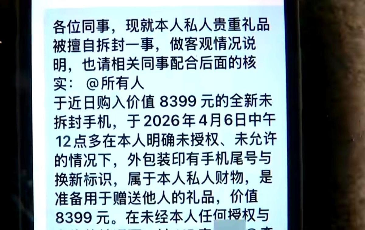 杭州,一名男子为了感谢老家弟弟,省吃俭用花了8300多块钱,网购了一部顶级配置的vivo X300 Ultra手机。 谁能想到,他只是下楼吃个饭的功夫,这台还没焐热的手机,竟然在办公室众目睽睽之下被人“强行开苞”了。 不仅包装撕了个精光,连原厂膜都被扯了,更离谱的是,维权还没成功,他却先等来了公司的开除通知。 这起发生在滨江区创伟科技园的职场闹剧,简直刷新了正常人的认知底线。 当事人李先生是个成都小伙,在杭州这家科技公司做设计,本想趁着换货到手的机会把礼物寄走。 4月6日中午,快递刚送到公司,他前脚刚走,后脚公司的一名HR李女士就动了手。 等李先生回来时,眼前的一幕让他血压升高:快递外壳稀烂,手机盒沾满油渍,那层象征“全新”的原厂膜早已不知去向。 面对质问,这位HR不仅没有半分愧疚,反而理直气壮地回了一句:“我以为是公司配发给我的工作机,拆了又怎样?” 这种逻辑简直荒唐,公司配发手机难道没有领用清单?没有行政通知? 李先生要求对方承担一点折旧费,毕竟8300元的手机被拆封后,在二手市场瞬间缩水上千元,这礼物也没法送了。 可对方的态度硬得像花岗岩,直接回绝赔偿,甚至让受害者自己去找商家退货。 求助无门的李先生选择了报警,可民警到场后也只能进行调解,因为这在法律定性上属于民事纠纷。 眼看对方在警察面前依然一副“你能拿我怎么样”的嘴脸,李先生在4月7日做了一个决定:在公司几百人的大群里还原真相。 他没有谩骂,没有造谣,只是发了800字的经过和现场照片,想求一个公道。 结果,公司领导层不仅没有惩戒那个乱动别人私人物品的HR,反而把枪口对准了受害者。 先是强制要求删帖,理由是“不要占用集体资源”,紧接着,一份解除劳动关系的通知书直接甩到了李先生脸上。 理由写得冠冕堂皇:因个人恩怨影响工作秩序,两次报警造成负面影响。 更狠的是,公司不仅没给补偿,连试用期的工资和社保都想赖掉,撂下一句:“不服你去告”。 这种操作简直是职场版的“解决不了问题,就解决提出问题的人”。 要知道,根据我国《宪法》和《邮政法》的相关规定,隐匿、毁弃或者非法开拆他人信件、快件,本身就是违法行为。 HR李女士的行为已经构成了对他人物权和隐私权的侵犯,作为公司管理层,不仅没尽到约束责任,反而助长歪风邪气。 看看以往的案例,广州曾有快递员私拆包裹被合法开除,西安曾有公司乱开除员工被判赔40万。 在法治社会的今天,企业竟然还想靠这种“强权逻辑”来堵住打工人的嘴,实在太天真。 李先生目前已经准备申请劳动仲裁,不仅是为了那部被毁掉的手机,更是为了讨回职场人的尊严。 这种“谁弱谁吃亏,谁闹谁走人”的荒诞逻辑,如果不被法律纠正,那每一个老实工作的职场人都将失去安全感。 这件事背后,折射出的是部分企业管理层法治意识的极度匮乏和对员工权益的漠视。