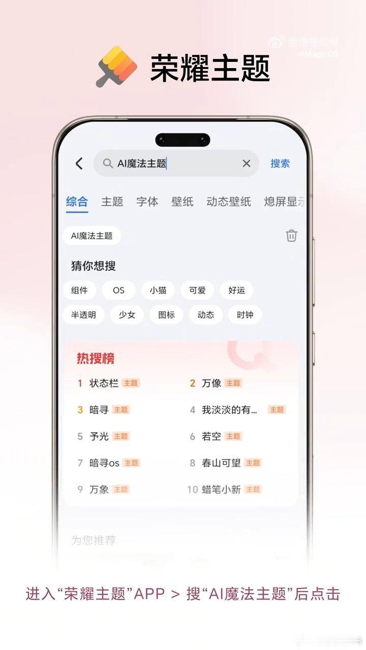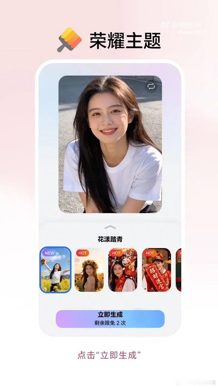 想把春天揣进手机里?荣耀这波操作也太懂了吧!打开荣耀主题APP,直接搜“AI魔法主题”,找到「花漾踏青」选项点一下,就能一键生成专属春日屏保~ 随机切换的模板全是满满春光,每次点亮屏幕都像闯进花海,不用出门也能get惬意赏花感!荣耀MagicOS