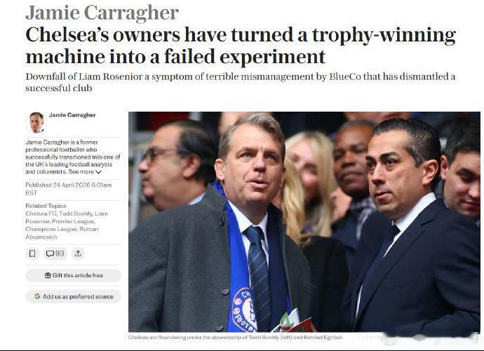 卡拉格的这番言论再次引发了外界对切尔西当前经营模式的广泛讨论。