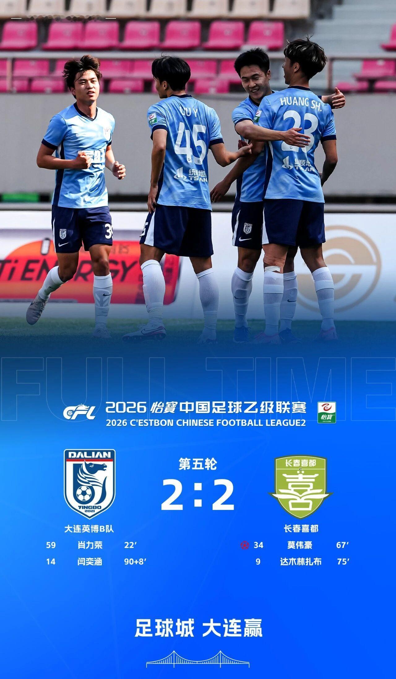 英博2026·B队战报|闫奕涵读秒绝平!肖力荣进球 大连英博B队2-2长春喜都队