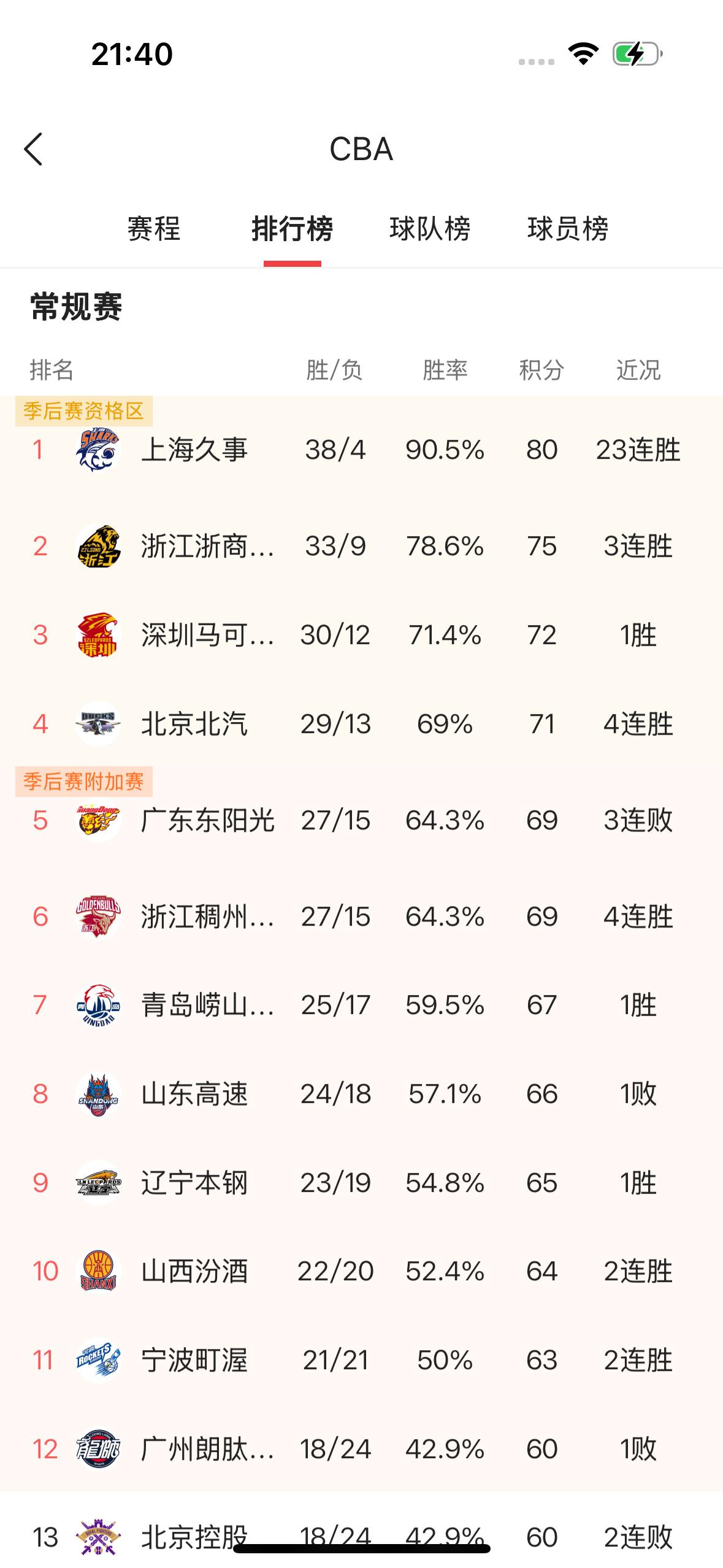 广州朗肽海本男篮命运太好了! 广州朗肽海本男篮最终依靠宁波男篮战胜了北京控股男篮,拿下了季后赛最后一张门票! 广州男篮虽然主场以87比99输给了深圳马可波罗男篮,但是竞争对手北京控股男篮以78比94输给了宁波盯渥男篮,由于积分和两支球队的胜负关系,最终广州男篮排名第十二,北京控股男篮排名第十三,广州男篮进入季后赛! 恭喜广州朗肽海本男篮打进季后赛!