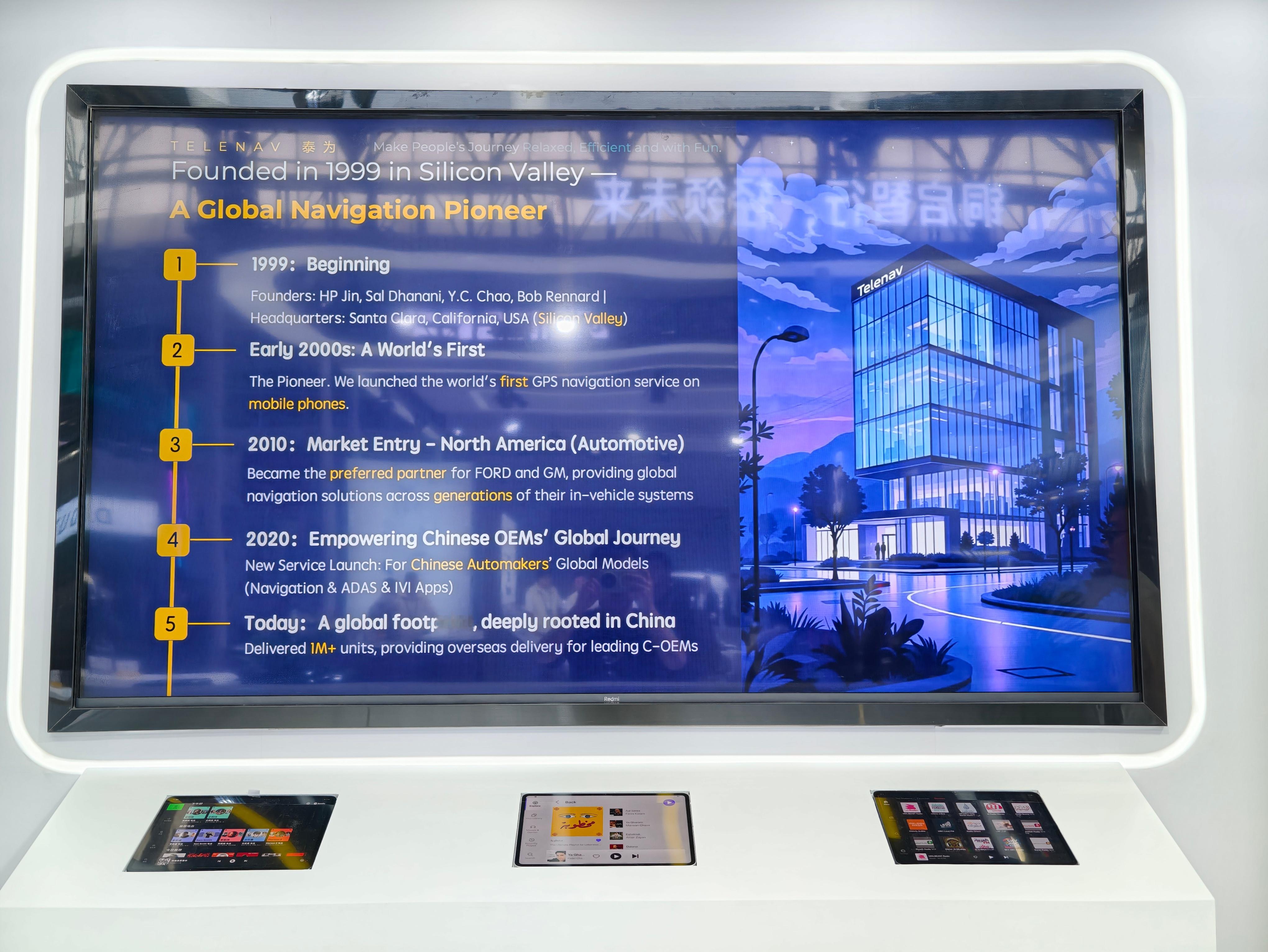 打卡北京车展泰为Telenav展台其实之前没听说过这个低调的企业,但是今天才知道,中国车企出海已成主旋律,而顺畅的海外用车体验背后,是泰为Telenav这样的技术底座在托底。作为1999年硅谷成立的全球导航与车载软件先驱,泰为已深度服务小鹏、蔚来、比亚迪、上汽、长安、奇瑞等主流品牌出海,全球装车超4500万台,中国出海车型搭载量破100万台。展台可直观体验两大核心能力:全球导航系统与海外车载生态。针对右舵、多语言、多地合规难题,泰为提供全链路本地化方案,覆盖欧美、中东、东南亚等全球市场,让导航体验不输国内。座舱生态集成Spotify、Zoom、myTuner Radio等全球主流应用,一站式满足海外用户娱乐、办公需求。智能泊车同样亮眼,以AI视觉+多传感器融合,实现APA自动泊车、VPA记忆泊车,成功率超95%,全场景适配且支持多芯片平台。从导航、生态到智能泊车,泰为用全栈自研、全球交付能力,让中国车在海外不仅好开,更好用。