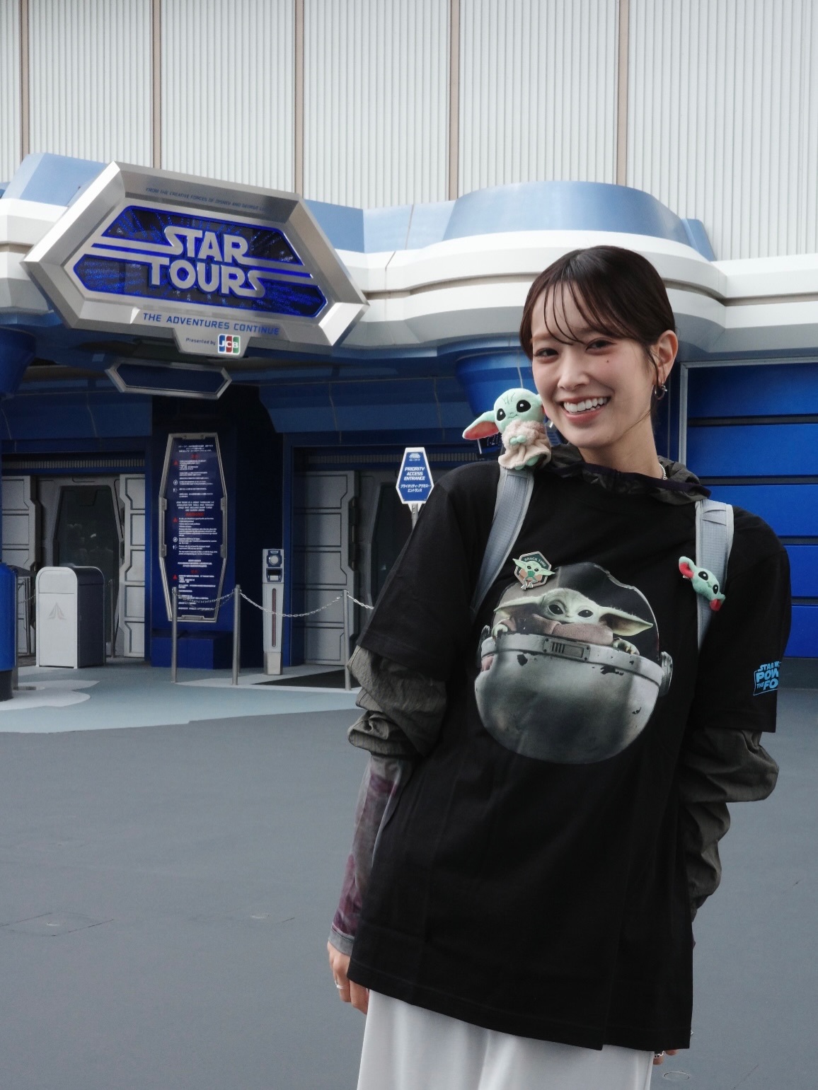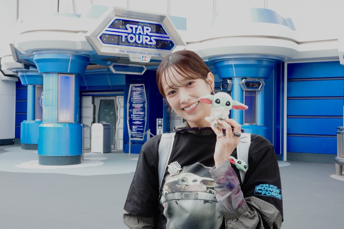 佐々木久美🦒「ディズニーさんにご招待いただき、マンダロリアンとグローグーが必ず登場する特別バージョンのスターツアーズに行ってきました!グローグーグッズいっぱい身につけて行ってきました૮₍ •ᴗ•₎აスターツアーズの中であの2人に会えるなんて、、、とっても最高の宇宙の旅でした🚀6月30日までみたいなので、皆さんもマンダロリアンとグローグーに会いに行ってみてください🩶」kumigram
