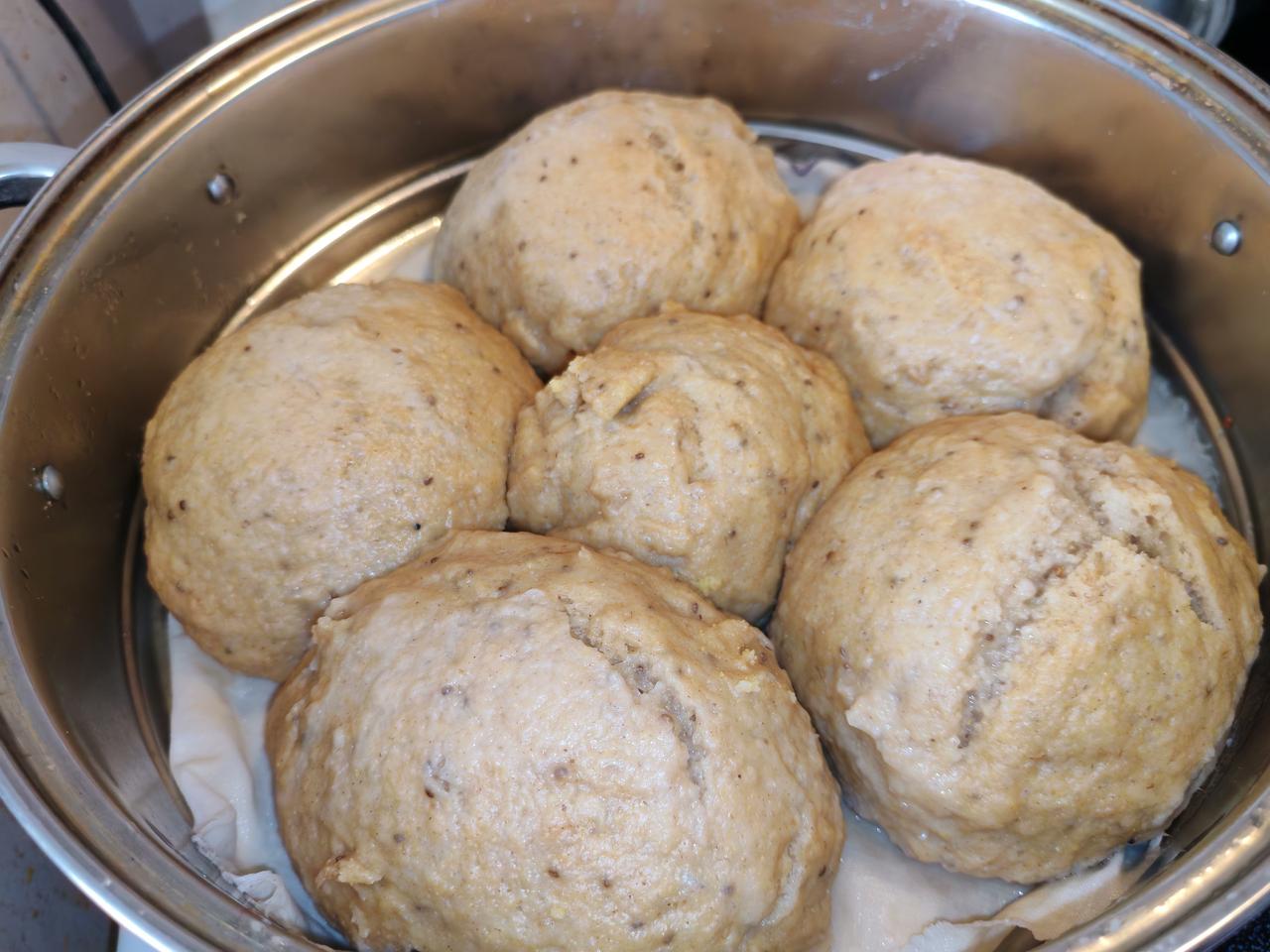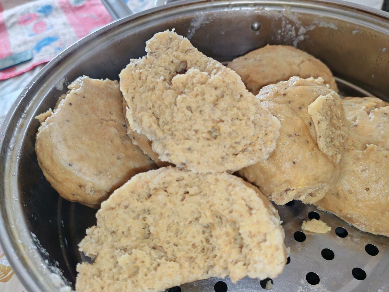 看看老两口:用四种面做的控糖杂粮面馒头怎么样! 今天,用儿子儿媳妇儿给我们买的“即食低糖燕麦片”,“全麦粉”,“玉米面”和“白面”做了一款控糖“四粉”杂粮面馒头! 儿子儿媳给我们买的“即食燕麦片”,开水一冲即可以食用。 晚饭时,老伴冲了一袋,微甜,浓稠,浓浓的奶香味扑鼻。老伴特别喜欢喝。 儿子儿媳给我们买了好几种即食燕麦片。 我上“豆包”问了:所有的这些即食燕麦片,都是以100%全谷物燕麦为底基制作的。蛋白质含量特别高,比普通的燕麦片的含糖量低40%! 饱腹感极强!深受控糖和健身人士的喜爱。 今天,我用两袋即食燕麦片和其他面粉和在一起做了一款杂粮面馒头。 四样面粉包含:一,速食燕麦片2袋,二,少许玉米面,三,两小碗全麦粉,四,一小碗白面,主要还是以全麦面为主。 把玉米面用开水烫了,把速食麦片用牛奶冲开,放上适量的酵母粉,面醒发了之后,放在锅里蒸了20分钟。 这款杂粮面馒头特别的好吃,筋道又微甜,既满足了口感,又不升血糖。 今晚给老伴做的饭菜非常的简单!老伴不用菜就能吃一个四合面的馒头,他说好吃 今晚给老伴冲的即食麦片粥,浓浓的奶白色,有一股牛奶味。 给老伴做的菜也很简单,头菜炖的三文鱼,三文鱼没有腥味,老伴也特别爱吃!
