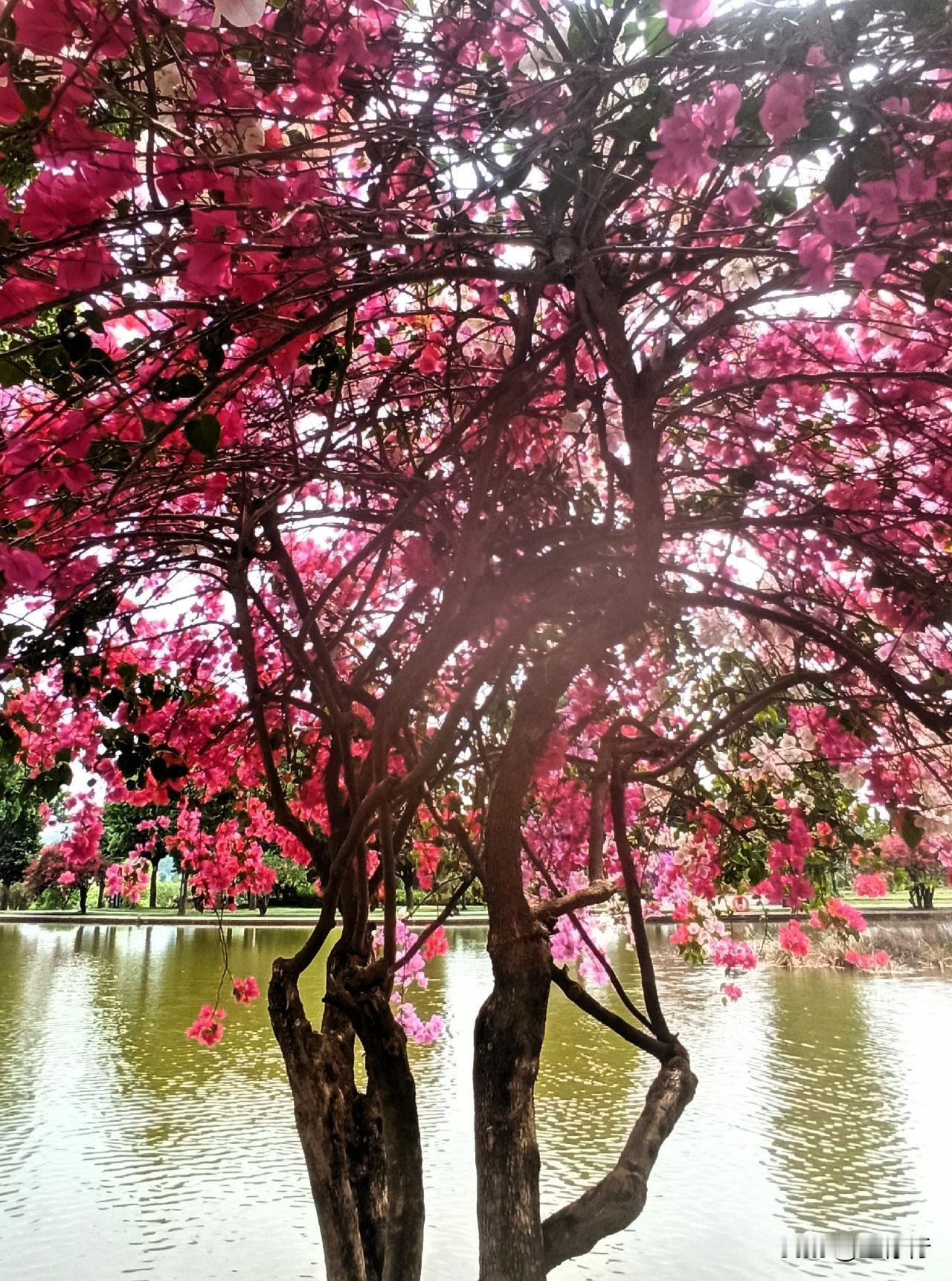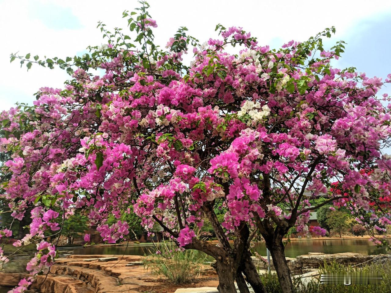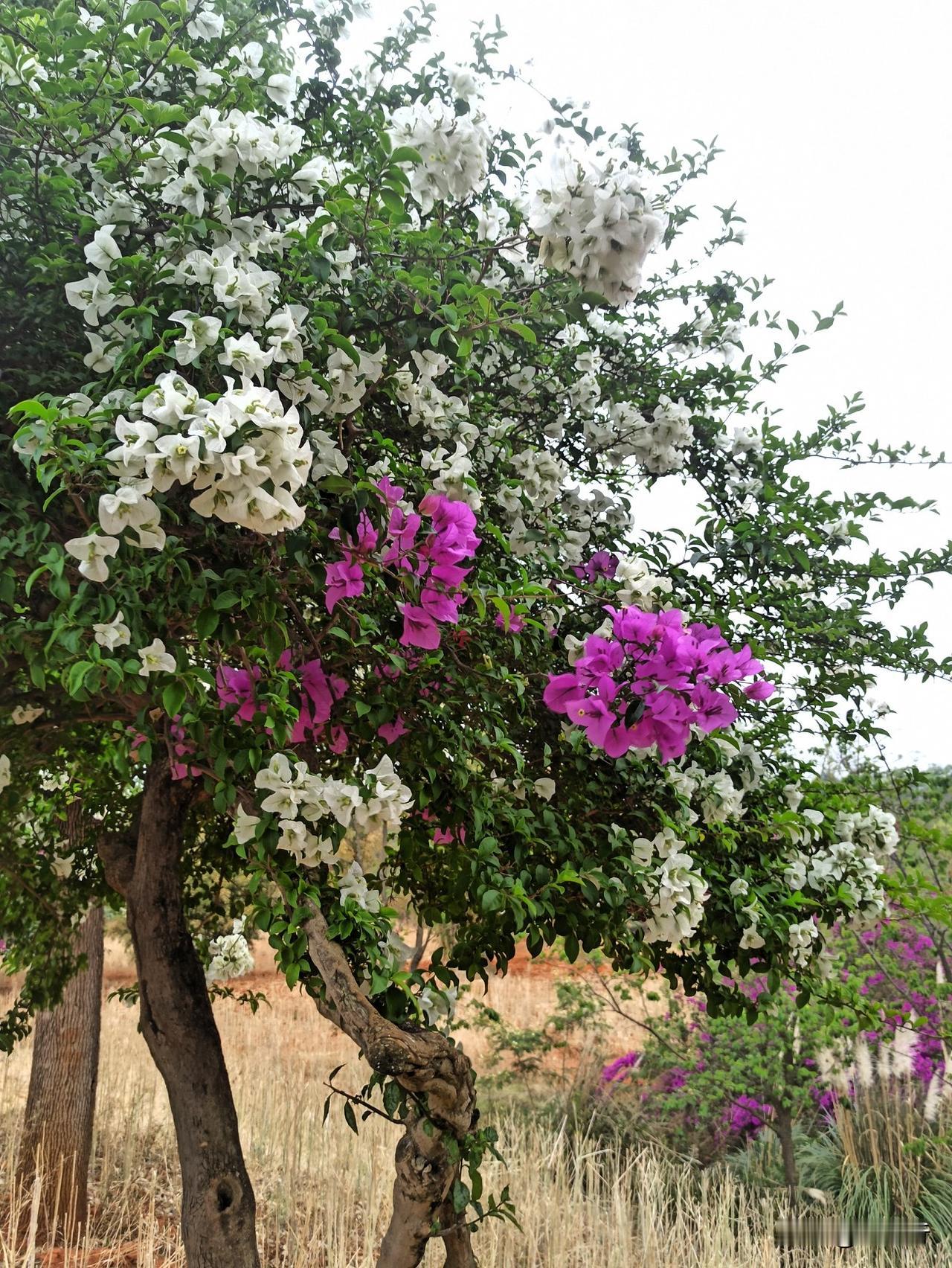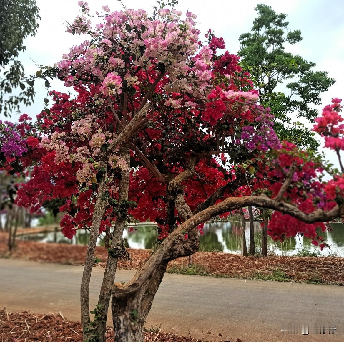 太神奇了,一棵树上竟有5、6种颜色的花。也许是我少见多怪,这种花树还是第一次见。云南不愧是花都,不仅地上花儿多,各种花树也多,到处是万紫千红,炫丽夺目。这种树不知啥名,开满了鲜花,品类则有红黄粉白紫等多种色彩。更为惊奇的是,一棵树上竟有5种之多的花色,满目芳菲,五彩缤纷,好一幅姹紫嫣红的锦绣之图。治愈树花 开花景观树 花树 花都 云南 七色花儿 七彩植物 花