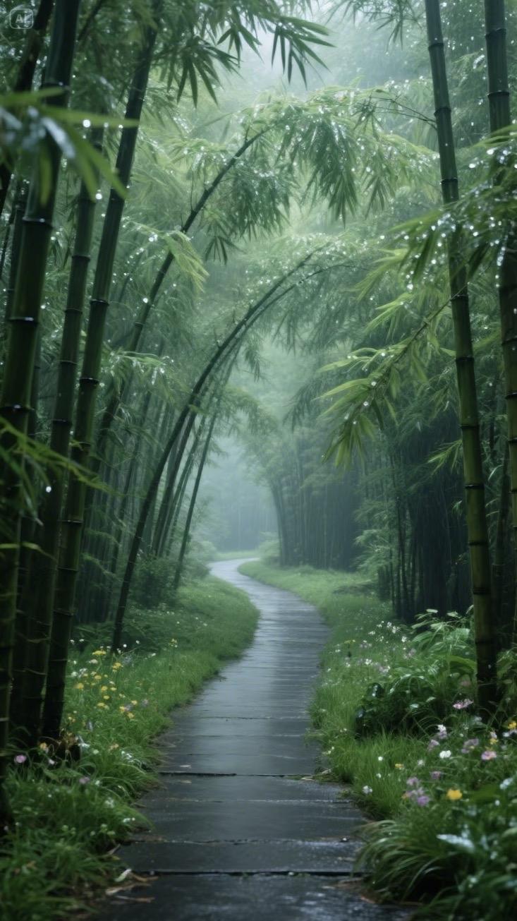 上联:推窗又见桃花雨 下联:扫径且听竹露声