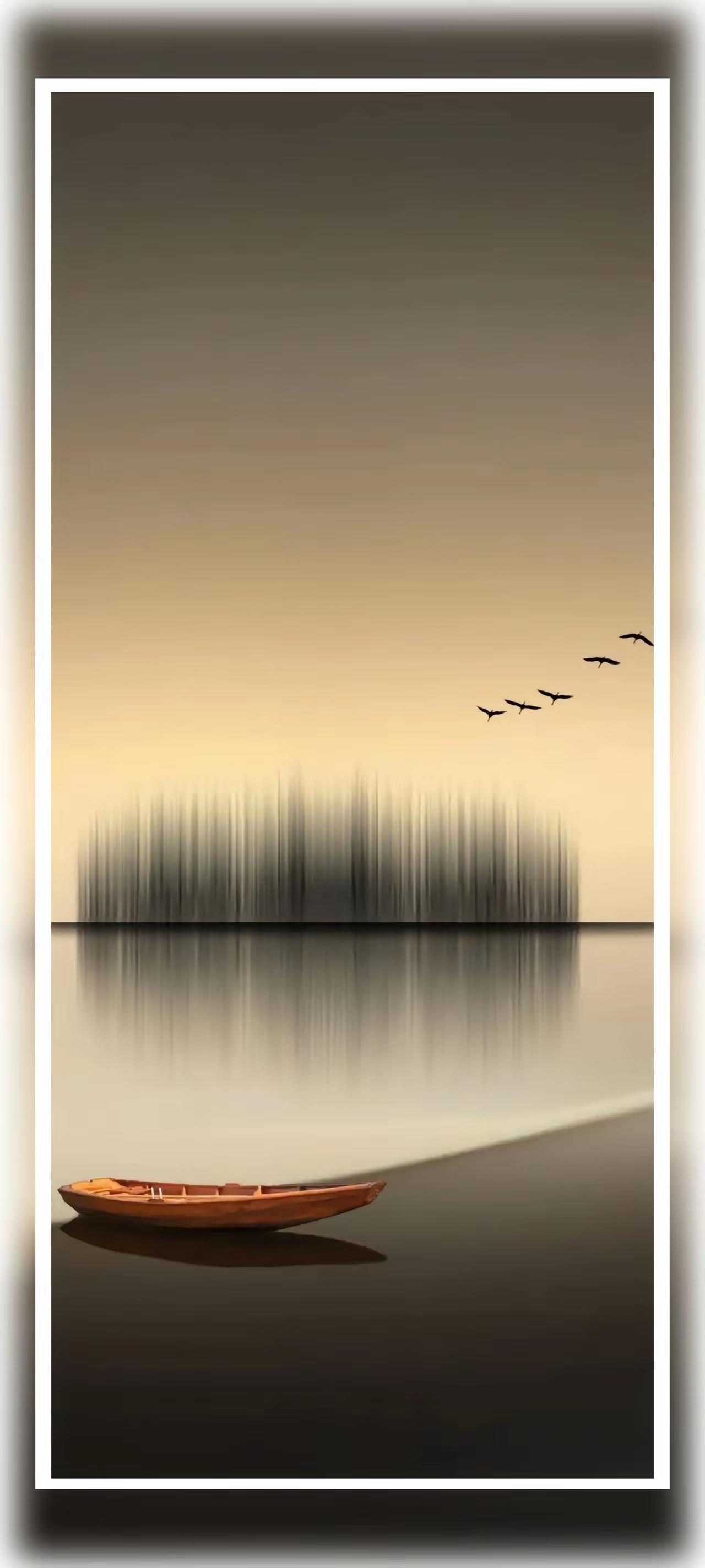 静谧湖面,孤舟独行,鸟儿相伴,心旷神怡。