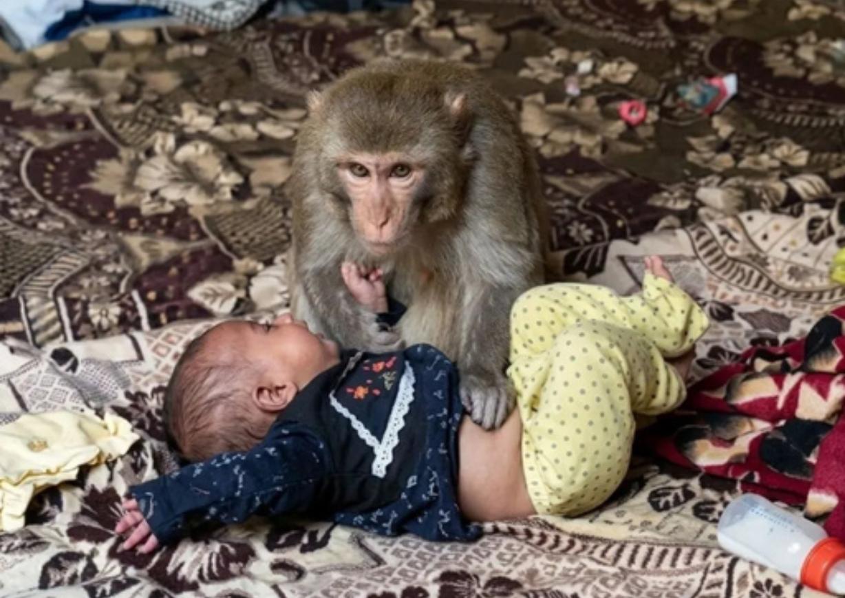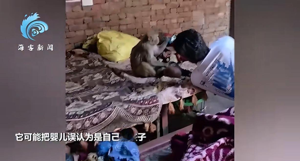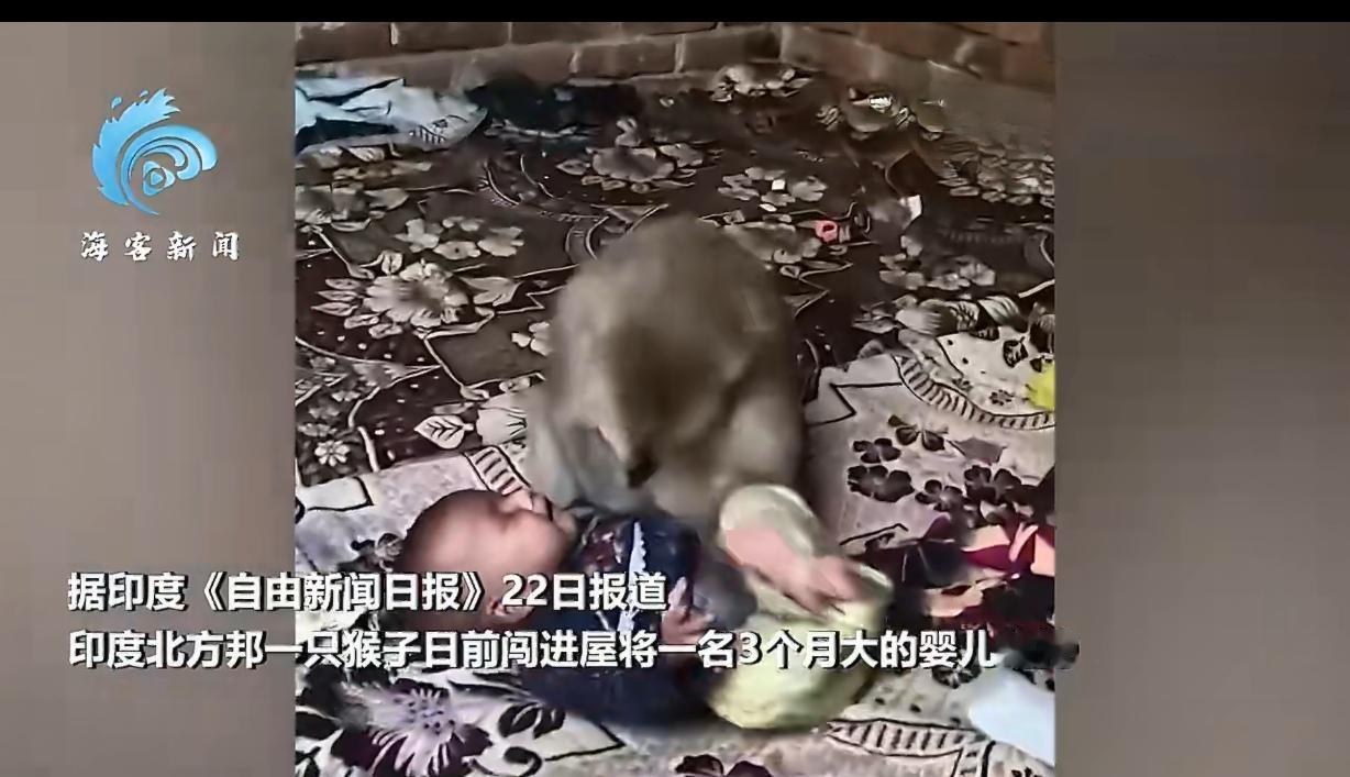 幼崽夭折后猴子闯民宅“劫持”婴儿 印度猴子劫持人类婴儿 奇葩动物事件 全球奇闻 印度北方邦发生一起惊险事件!一只猴子因幼崽夭折,竟闯入民宅“劫持”了一名3个月大的婴儿。 这只猴子先是抚摸、陪伴婴儿玩耍,但只要有人试图靠近救援,它就会猛烈扑咬,阻挠众人救下孩子。最终,大家用手机分散猴子注意力,才成功将婴儿安全救出。 当地人猜测,猴子可能是因为自己的幼崽几天前夭折,悲痛之下把人类婴儿误认成了自己的孩子,才做出这样反常的举动。 不得不说,动物的母爱真的很纯粹也很执着,只是这样的“认错”实在太惊险!还好婴儿最终平安无事,真是不幸中的万幸。 你还见过哪些动物的奇葩或暖心举动?评论区分享一下~