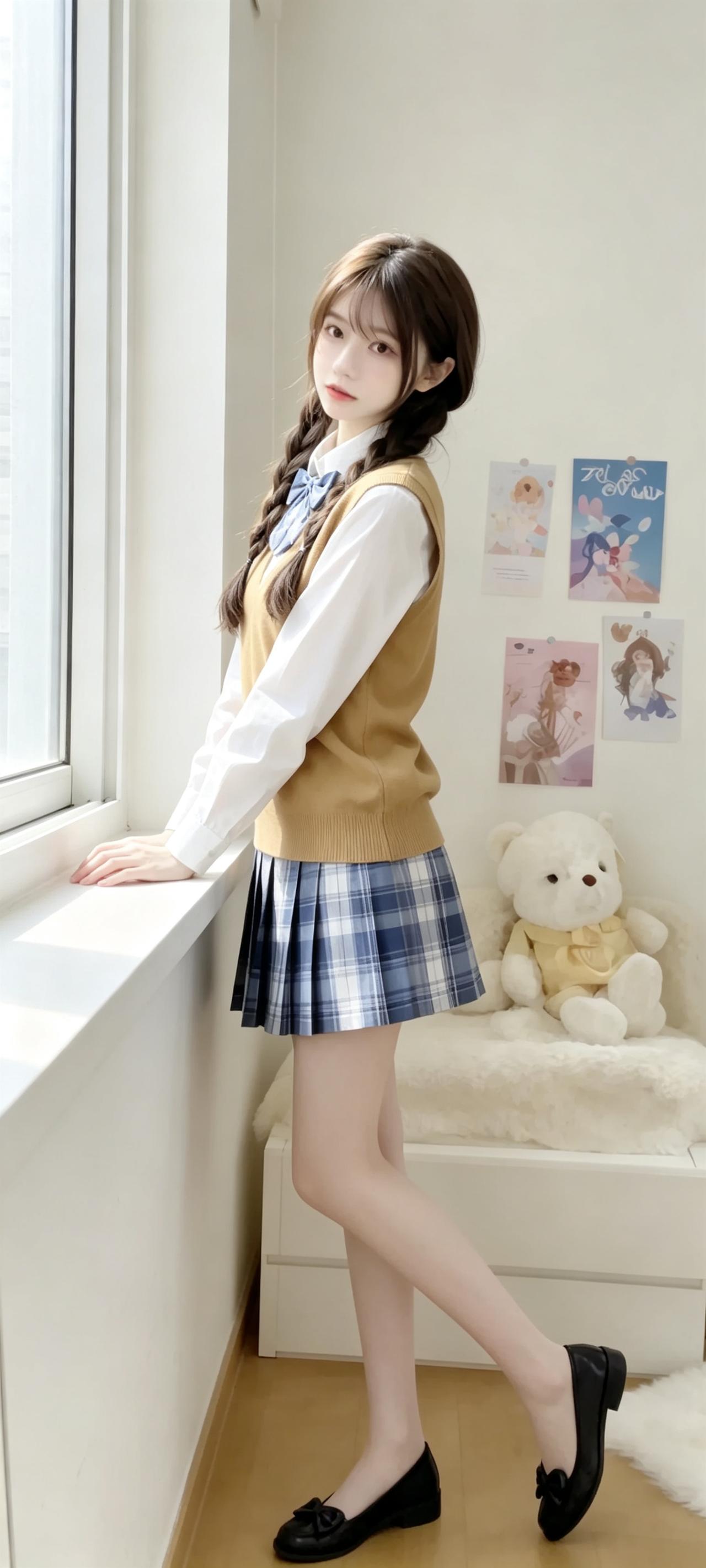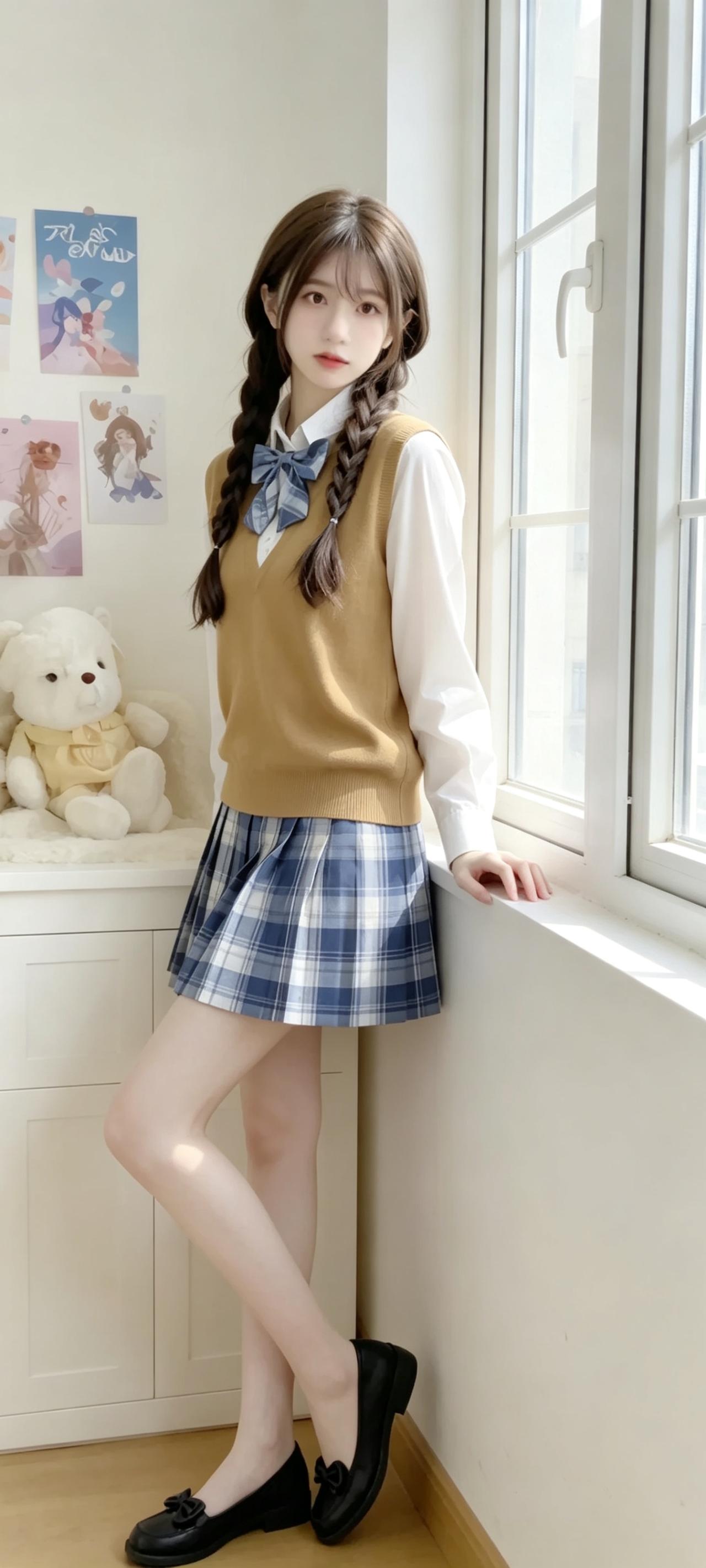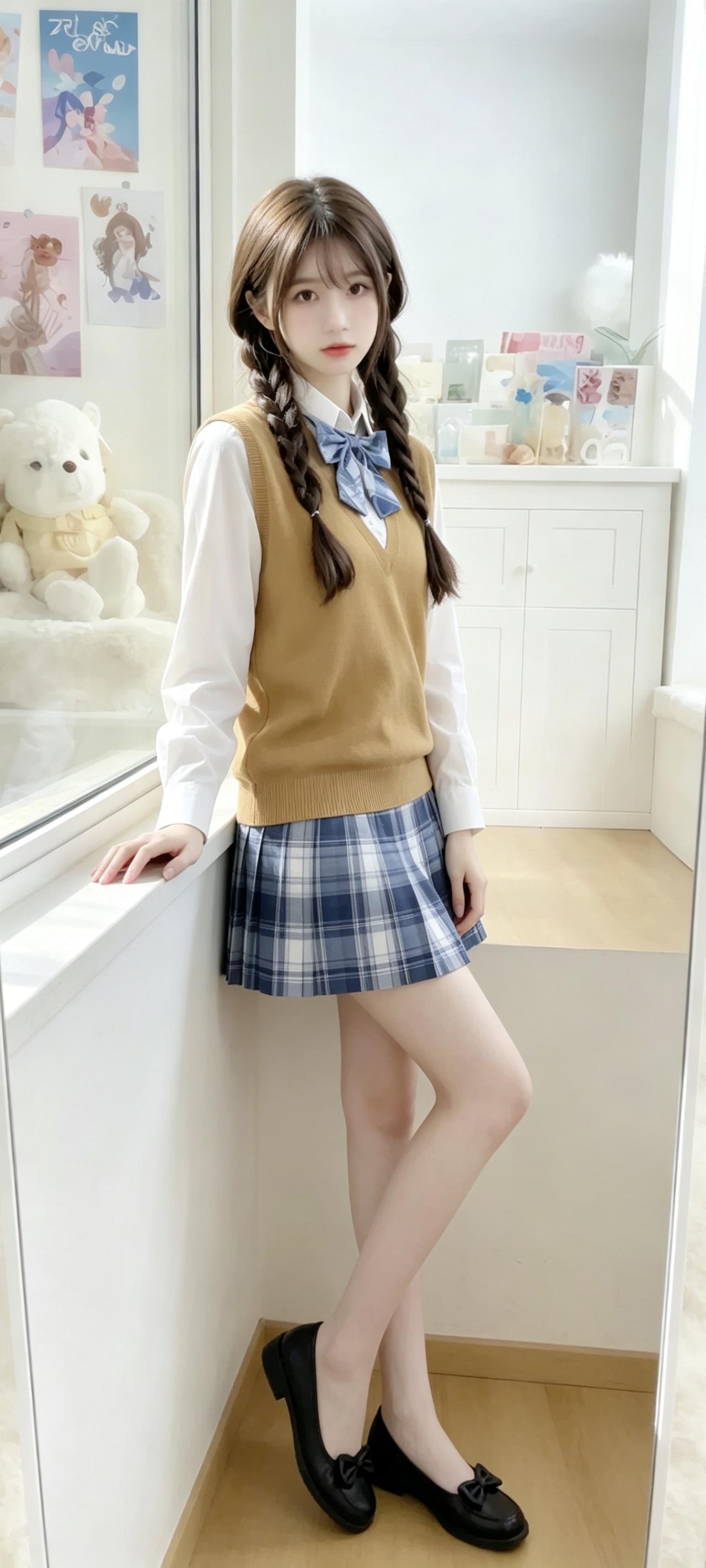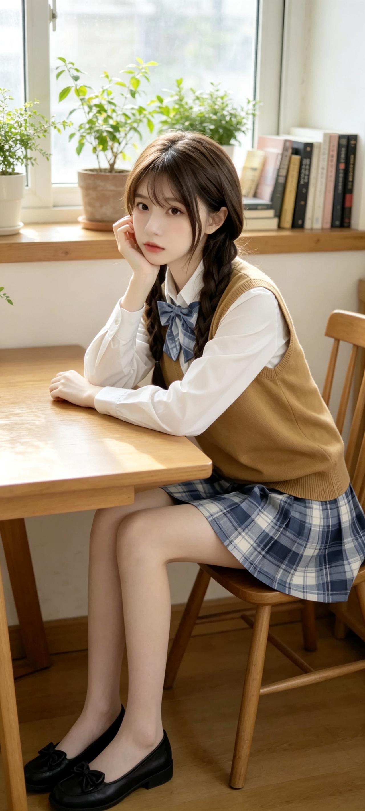 被问疯了的学院风穿搭!温柔减龄,氛围感直接拉满✨ 今天翻看相册,看到这组JK搭配针织马甲的照片,一下子就被带回了学生时代。 白衬衫搭配卡其色针织马甲,再配上蓝格纹百褶裙,妥妥的日剧里常见的温柔女主穿搭,干净又经看。 双麻花辫搭配同色系领结,瞬间有了青春的气息,搭配窗边的绿植和书本,整个画面都弥漫着治愈的温柔感。 这种学院风穿搭真的魅力十足,穿上后整个人都元气满满,感觉自己又成了无忧无虑的学生。 学院风穿搭 JK制服 温柔风穿搭