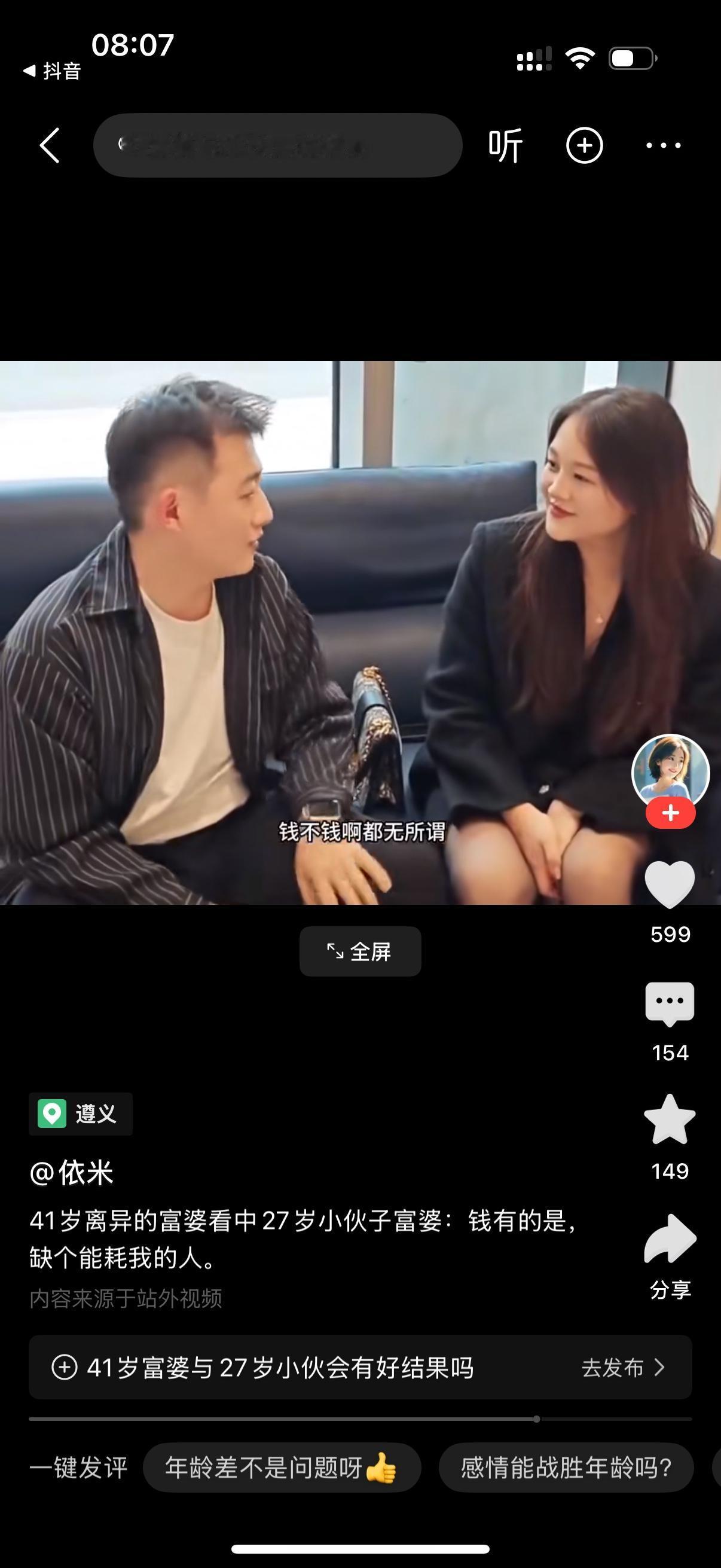 41岁的离异富婆看上27岁的小伙子。富婆开门见山就说,自己离异1年多,在需求量方面还是挺大的,不知道小伙子身体怎么样?小伙子信誓旦旦,我这边尽力做到满足。富婆心花怒放,说可以提前给小伙20万块钱零花钱,相处好了,房子,钱都是小伙的。小伙说,钱不钱无所谓,最主要就是喜欢姐姐这一款。富婆乐得前仰后合。