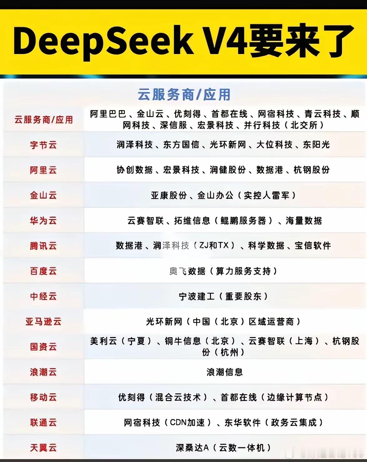 DeepSeek V4强势来袭 产业链概念股投资逻辑全解析近期DeepSeek V4新版本正式发布,凭借领先的模型性能、全面的国产算力适配以及商业化落地潜力,迅速成为资本市场聚焦热点,带动AI全产业链热度攀升。作为国产大模型的重磅迭代产品,DeepSeek V4不仅推动人工智能技术迈上新台阶,更引爆产业链上下游投资机遇,其背后的投资逻辑清晰,核心标的具备较高的关注价值。DeepSeek V4实现了多维度技术突破,在推理能力、上下文窗口、运算效率等方面实现大幅升级,同时深度适配国产算力芯片,打破海外技术与硬件双重限制,加速国产AI生态自主可控进程。从行业发展来看,大模型技术迭代是AI产业发展的核心驱动力,DeepSeek V4的落地,将进一步激活AI训练、推理、行业应用等全场景需求,带动算力芯片、AI服务器、算力基础设施、垂直应用等环节业绩释放,这也是相关概念股获得资本市场认可的核心逻辑。从投资价值来看,DeepSeek V4带动的产业链红利主要集中在四大核心赛道。其一为国产AI芯片,作为大模型运行的核心硬件,DeepSeek V4全面适配国产芯片,直接拉动国产AI芯片需求增长,推动国产替代提速,相关芯片企业订单与盈利预期持续提升;其二是AI服务器,大模型训练与推理需要海量服务器支撑,服务器厂商作为算力载体,直接受益于下游需求爆发;其三为算力服务与基础设施,包括算力租赁、液冷散热、数据中心等,为大模型运行提供底层保障,行业景气度持续走高;其四为AI垂直应用,依托DeepSeek V4强大的模型能力,金融、办公、数据服务等领域应用加速落地,打开企业盈利新空间。综合产业链受益程度、业务关联度及业绩弹性,筛选出10大核心受益标的,具体如下:1. 海光信息(688041):国产AI芯片龙头,产品深度适配DeepSeek V4,承接大模型推理与训练算力需求,国产替代核心受益标的。2. 寒武纪(688256):云端AI芯片技术领先,完成DeepSeek V4全栈适配,直接受益于大模型算力需求放量。3. 拓维信息(002261):华为昇腾生态核心伙伴,打造国产AI服务器,为DeepSeek V4提供硬件算力支撑,业务绑定紧密。4. 高新发展(000628):旗下华鲲振宇专注昇腾服务器,是国产AI算力硬件核心供应商,深度受益DeepSeek V4算力需求。5. 浪潮信息(000977):全球AI服务器龙头,为大模型训练提供核心服务器设备,充分受益行业需求增长。6. 中科曙光(603019):布局算力基础设施与液冷技术,适配大模型高功耗运行需求,算力基建核心标的。7. 优刻得(688158):主营算力租赁与云服务,为DeepSeek V4提供算力托管与部署服务,需求端持续受益。8. 拓尔思(300229):依托大模型技术布局AI行业应用,携手DeepSeek落地金融、舆情等场景,应用端弹性充足。9. 中贝通信(603220):发力AI算力租赁业务,承接大模型推理算力需求,业绩增长确定性较强。10. 高澜股份(300499):专注AI服务器液冷散热,解决大模型高功耗散热痛点,受益算力基建扩张。整体而言,DeepSeek V4的发布是国产AI产业发展的重要里程碑,短期将带动产业链需求集中释放,相关标的迎来估值与业绩双重修复机遇;长期来看,国产大模型技术持续迭代、AI生态不断完善,将推动行业进入高质量发展阶段,核心龙头企业具备长期投资价值。但需注意,AI行业技术迭代较快、市场竞争加剧,相关公司业绩兑现存在不确定性,投资需理性甄别。免责声明:本文仅基于公开信息进行财经分析,不构成任何投资建议。市场有风险,投资需谨慎,投资者应根据自身风险承受能力独立做出投资决策,自行承担投资风险。