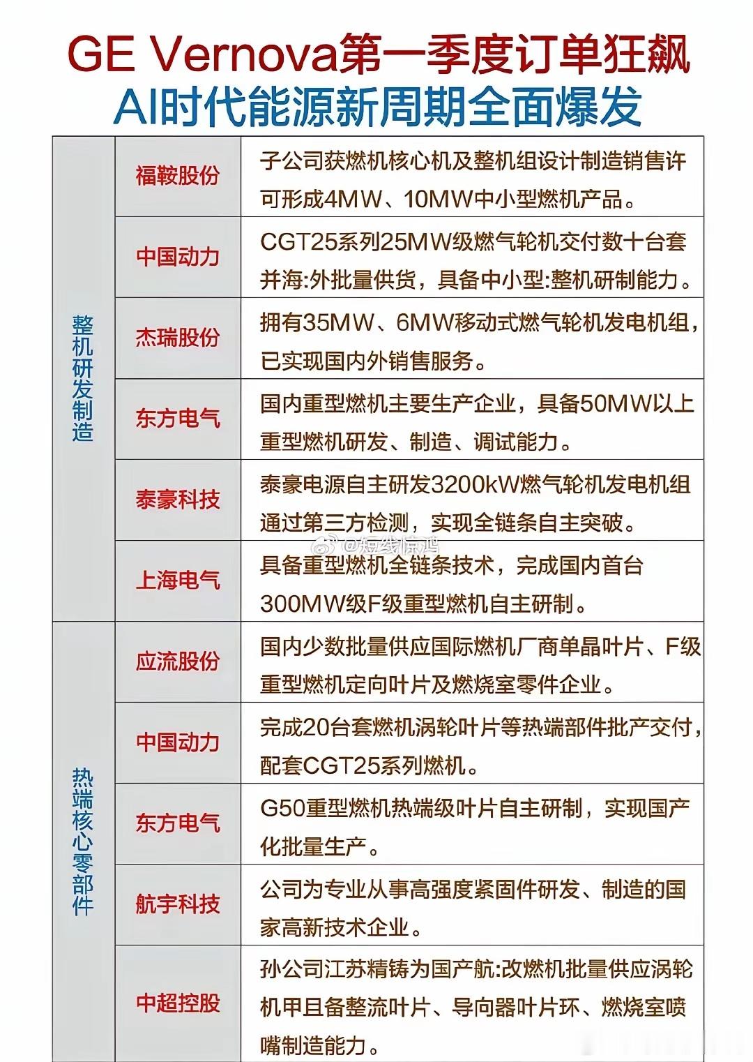 国产燃气轮机技术全面突破国内燃气轮机实现跨越式发展,覆盖中小型到重型全机型,核心部件完成国产化,产业链日趋完善。以往技术长期被海外垄断,如今自主研发落地。东方电气重型燃机关键部件全国产化,稳定运行成效显著;上海电气、杭汽轮等企业同步发力,多点突破。国内市场规模持续扩容,叠加全球数据中心用电需求提升,国产燃机迎来出口机遇。技术自主落地,既保障能源安全,也助力中国制造在全球能源转型中抢占优势地位。个人观点,不构成任何投资建议,股市有风险,投资需谨慎。