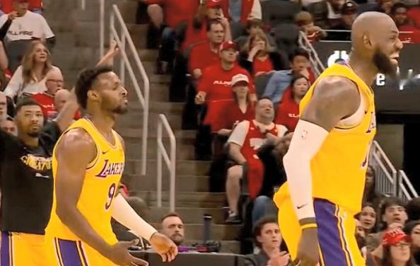 詹姆斯与布朗尼,两次父子连线! 北京时间4月25日,湖人与火箭的比赛来到第2节7分钟,詹姆斯与布朗尼完成两次父子连线,52-40曾帮助球队建立12分优势。 图一:詹姆斯弧顶将球交给布朗尼后,甘愿做绿叶给布朗尼单挡掩护挂住泰特,布朗尼三分。 图二:守转攻的反击战,詹姆斯持球,布朗尼快下,詹姆斯送空接,助布朗尼顺下上反篮。 随后詹姆斯又轰进三分,他给布朗尼的两次父子连线和三分,瞬间帮助球队建立12分优势。