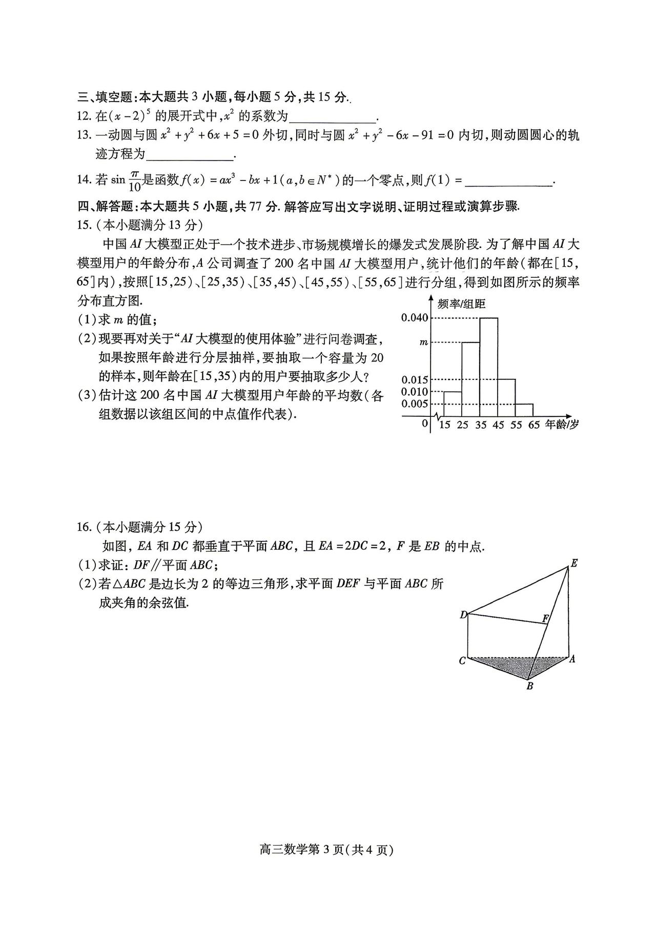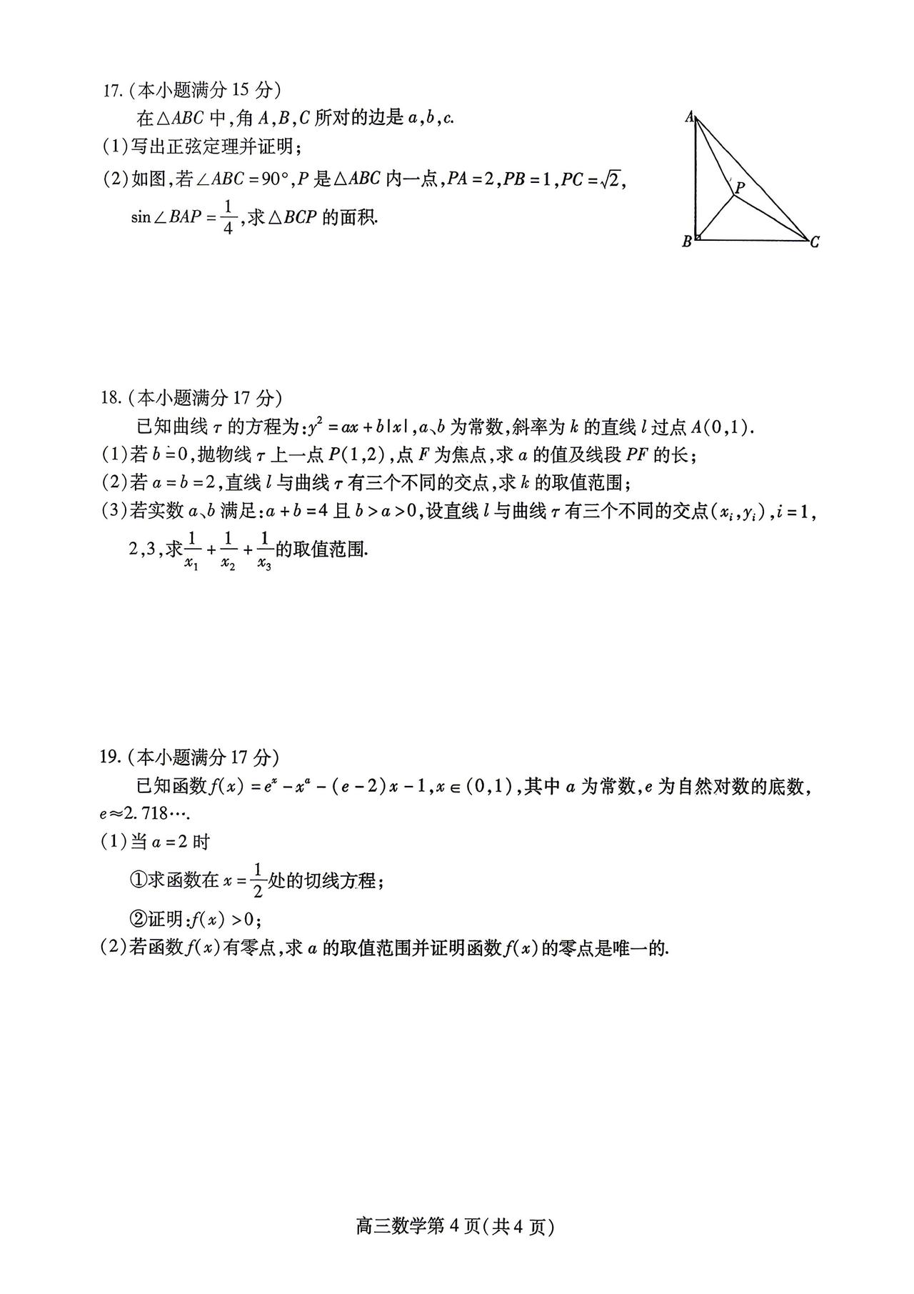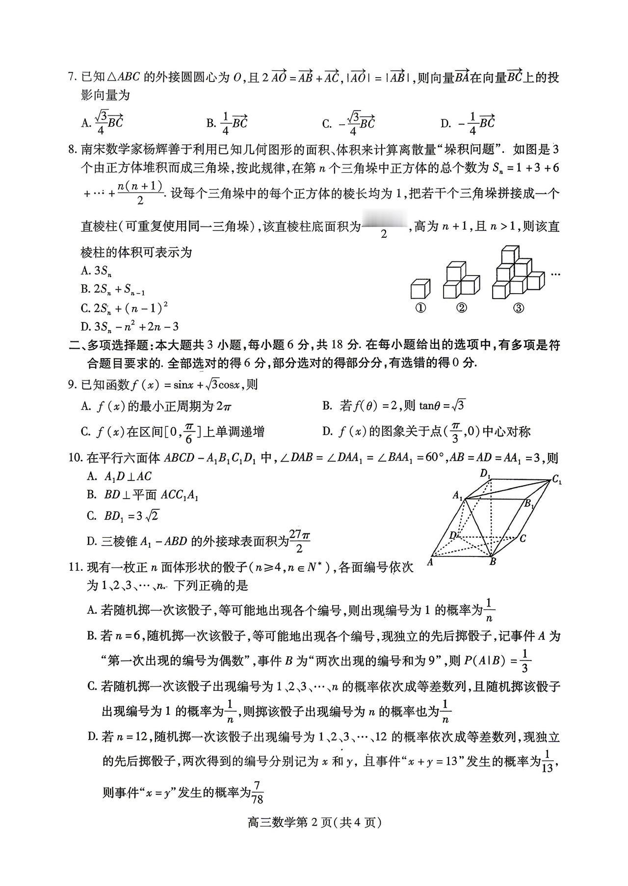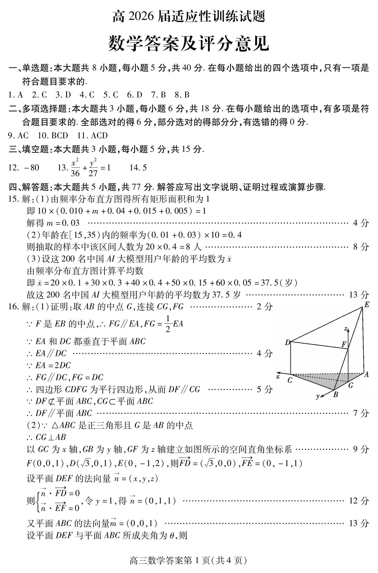 四川省内江市2026届高三4月模拟考试数学试题及答案