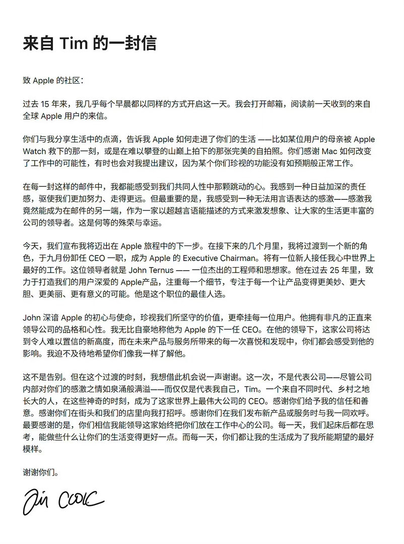 苹果新任ceo特努斯是谁苹果换帅,一个时代的落幕,另一个时代的开启。蒂姆·库克,这位将苹果市值从3500亿美元带到4万亿美元的“运营大师”,即将在9月1日卸任CEO,转任执行董事长。他交出了一份堪称完美的商业答卷。接棒者是约翰·特努斯(John Ternus),一位在苹果深耕25年的“硬件老兵”。从初代iPad到M系列芯片的Mac,再到最新的iPhone Air,苹果近十年几乎所有核心硬件的背后,都有他的身影。如果说库克时代是效率与规模的巅峰,那么特努斯时代,或许将是工程与产品的回归。在AI浪潮席卷一切的当下,这位工程师出身的CEO,能否带领苹果在硬件创新上再次“Think Different”?苹果新任ceo特努斯是谁