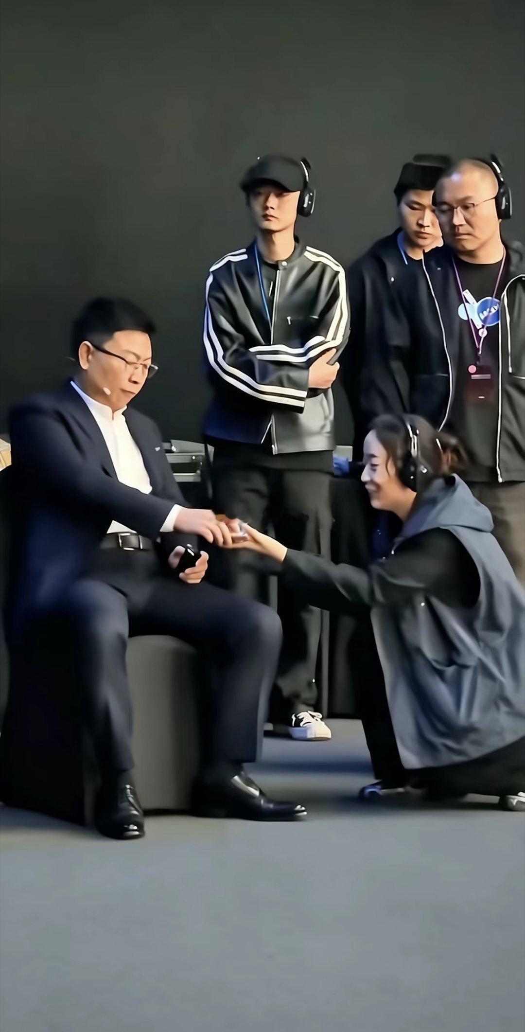 网传余承东耍大牌,北京车展让助理半跪、半蹲递东西,一次信息不对称的误会