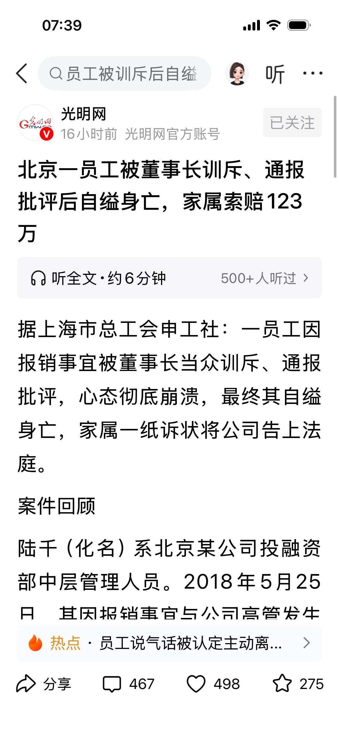 一个人被领导当众批评,于是一周后自杀了,家属索赔,法院虽然认为之间没有必然关系,但还是判了9万多的赔偿。 当下青少年心理健康问题比较严重,他们逐渐进入社会,问题可能就带进了职场。从小就没有被批评,没有经历过风雨的孩子们真受不了批评,真会死给你看的,职场不得不警惕了。