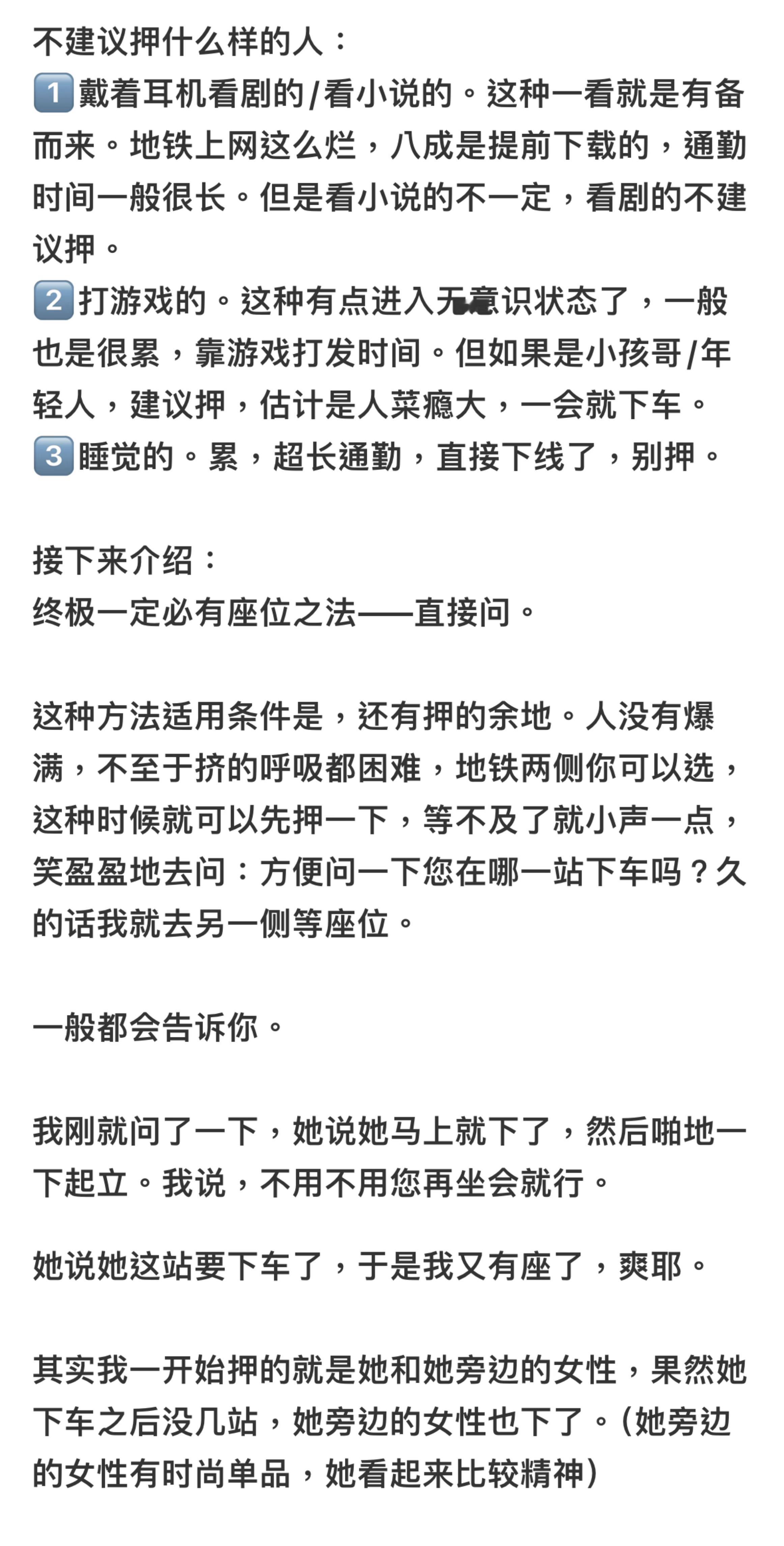 每次坐地铁都有座的小妙招,祝福大家都有座地铁押座