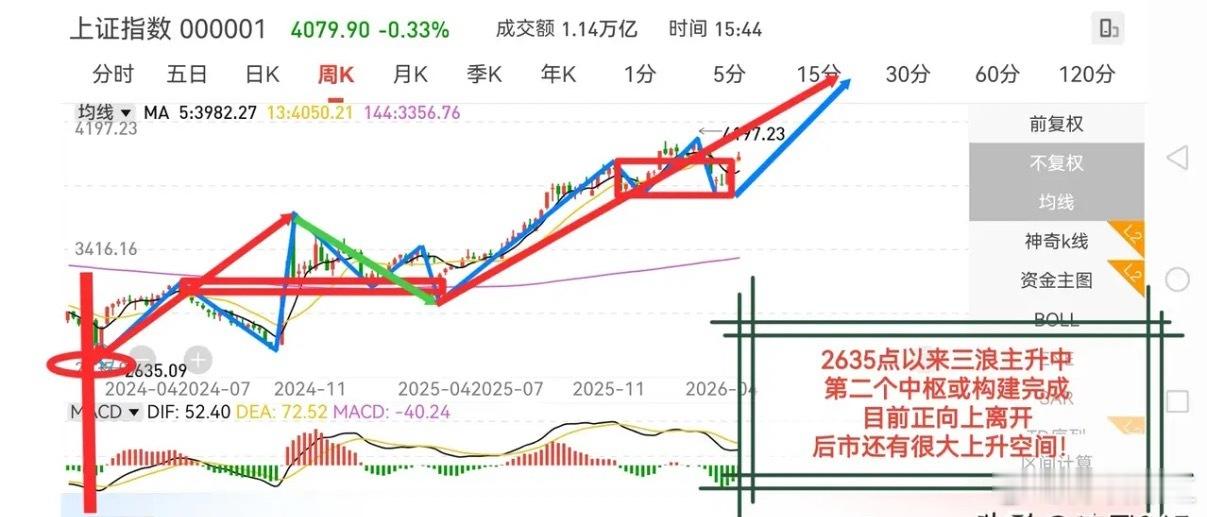上证本周冲高回落,最高至4114点、再创本轮反弹新高,收在4079点,周涨0.70%。