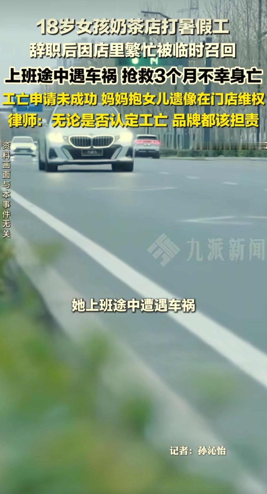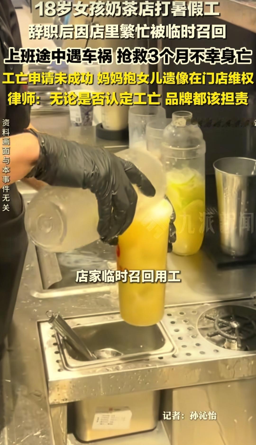 痛心!浙江杭州,一18岁女孩在奶茶店打暑假工,因临时有事在奶茶店辞职,不料,店里最近繁忙就交给女孩临时召回。结果,女孩在上班途中遭遇车祸,抢救3个月不幸身亡。事后,奶茶店拒绝承担责任,女孩妈妈去工亡认定申请也没有成功,最终,该单亲妈妈只能抱着女孩的遗像在奶茶店门前维权! 18岁的女孩,为了给即将到来的大学生活攒点旅游经费,也为了提前体验社会,女孩趁着暑假,找了家奶茶店做兼职,每天穿着干净的工服,在柜台后打包奶茶、接待顾客,虽然辛苦,但一想到未来的规划,脸上总会露出甜甜的笑容。 工作没几天,女孩因为临时有急事,没办法继续兼顾,便主动向奶茶店提出辞职,手续办得干净利落。 辞职后没几天,奶茶店迎来营业旺季,人手严重不足,忙得不可开交。 店长想到了之前工作认真负责的女孩,便主动联系她,商量着让她临时回来帮忙几天,等忙完这阵就好。 性格爽朗的女孩没好意思拒绝,答应了店长的请求,约定好第二天一早就去店里上班。 2025年8月20日清晨,天刚蒙蒙亮,女孩便收拾妥当,朝着奶茶店的方向出发,一路上还在和朋友发消息,念叨着忙完这几天就去挑选旅游目的地,眼里满是对未来的期待。 可谁也没想到,一场突如其来的车祸,无情击碎了所有美好。在途经一个十字路口时,女孩被一辆失控的车辆撞倒,当场昏迷不醒,鲜血染红了她的衣服,也染红了脚下的路面。 路人发现后,第一时间拨打了120急救电话,女孩被紧急送往医院抢救,一场与死神的赛跑就此开始。 女孩的母亲得知消息后瞬间崩溃,女儿是她辛辛苦苦拉扯大的全部希望,她寸步不离地守在重症监护室门口,每天以泪洗面,祈祷着女儿能奇迹般醒来。 她变卖了家里值钱的东西,四处借钱,只为给女儿最好的治疗,哪怕只有一丝希望,也不肯放弃。 可命运终究没有眷顾这个可怜的家庭,经过三个月的全力抢救,女孩还是因为多器官衰竭,永远离开了这个世界,离开了她最爱的母亲。 女儿的离去,让这位单亲妈妈彻底陷入绝望,她患上了严重的抑郁症,没办法正常工作,只能被迫辞职,每天精神恍惚,眼里没有一丝光亮。 她唯一的念想,就是为女儿讨回公道,可当她找到奶茶店,要求对方承担相应责任时,却遭到了无情拒绝。 奶茶店表示,女孩已经辞职,临时召回只是帮忙,双方不算正式用工关系,无需承担任何责任。 无奈之下,这位母亲只能抱着女儿的遗像,一次次来到奶茶店门口维权,日复一日,风雨无阻,却始终没有得到任何回应。 这件事4月23日报道后,迅速引发社会广泛关注,网友们纷纷为女孩惋惜,为这位单亲妈妈抱不平,大家不禁疑惑,女孩辞职后被临时召回,上班途中遭遇车祸,奶茶店真的可以置身事外吗? 女孩已年满18岁,符合法定用工年龄,虽然没有签订书面劳动合同,但临时召回形成的口头约定同样具有法律效力,双方已构成事实劳动关系。 每年暑假,大量学生选择打暑假工,他们大多处于劳动链底层,工作时间短、身份临时,很多用人单位不会为其缴纳工伤保险,也不签订正式劳动合同,一旦发生意外,权益很难得到保障。 18岁的女孩,本该拥有灿烂的人生,却因一场意外永远定格,她的悲剧不该被遗忘。 愿法律能给这位单亲妈妈一个公道,愿所有年轻劳动者都能被温柔以待,愿每一份劳动都应被尊重,每一条生命都值得被保护。