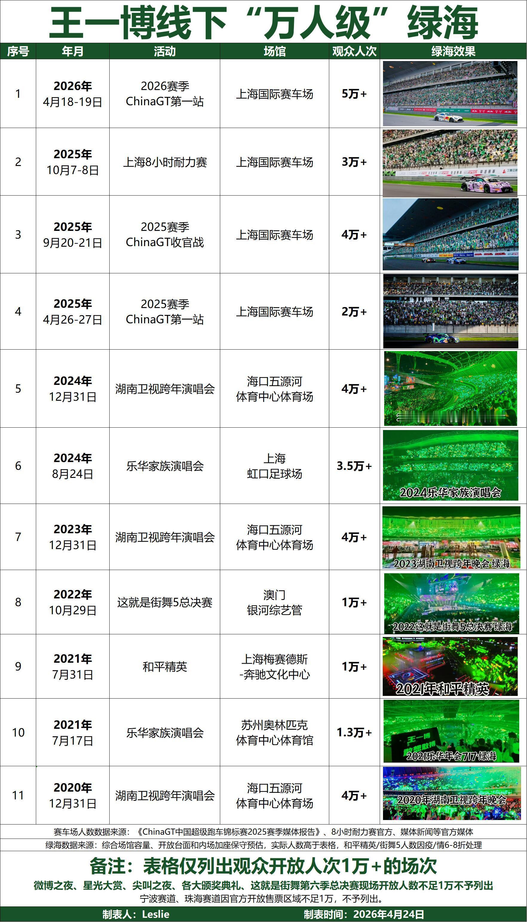 王一博11场万人级➕线下绿海4场赛车➕7场晚会