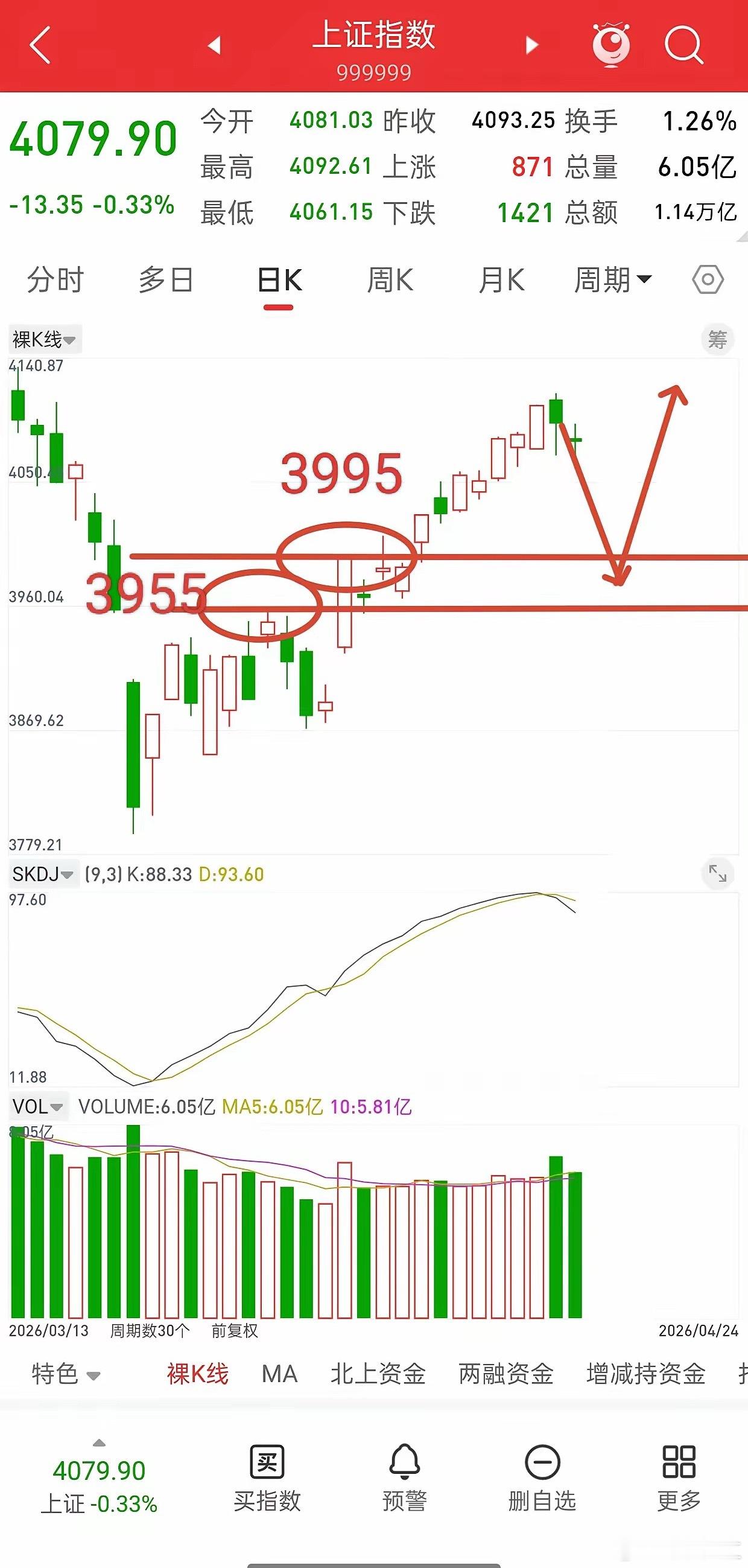 短期大盘仍有调整空间,下方关键支撑看3995-3955区间,回踩至此才是稳健低吸机会。